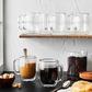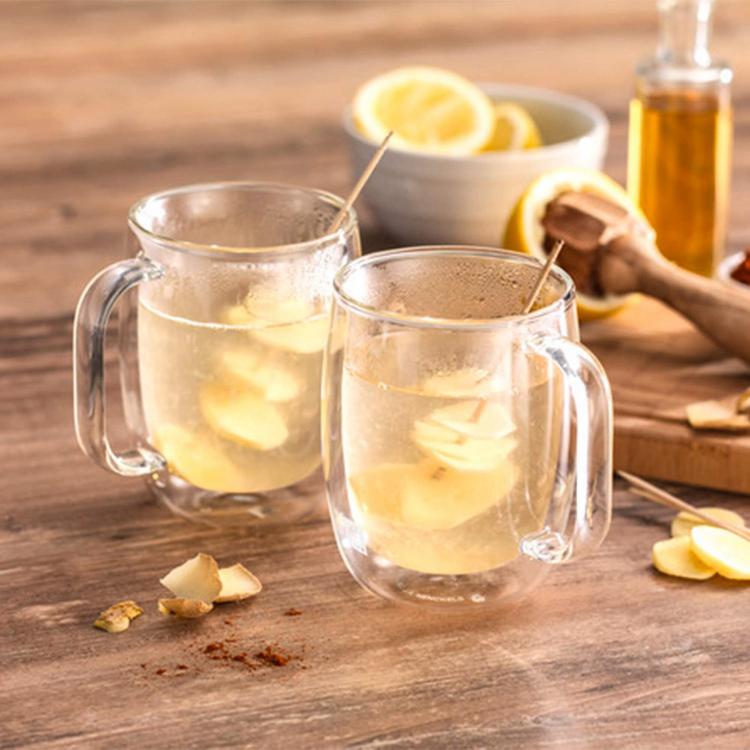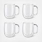 This modern 4-piece mug set is ideal for both everyday use and entertaining. The chic, translucent, double wall glass design maintains the toasty temperature of coffee and other hot beverages while remaining cool to the touch on the outside. You can also serve hot toddies or mulled wine on a cold winter day.Mouth-blown by skilled artisans, this distinctive glassware offers a visually impressive way to serve your favorite beverage. The innovative double-wall design maintains your beverage's ideal temperature, without messy condensation or the need for a coaster. Exceptionally durable due to their high quality, sturdy borosilicate glass construction, these glasses are both dishwasher safe and lightweight, making them a perfect option for outdoor dining. Set of four 12-fluid ounce coffee mugs. Double wall glasses maintain perfect temperature of beverages. Keep hot drinks hot while remaining cool to touch and cold drinks stay cool for longer with no messy condensation. Made from high-quality, durable borosilicate glass mouth blown by skilled artisans.