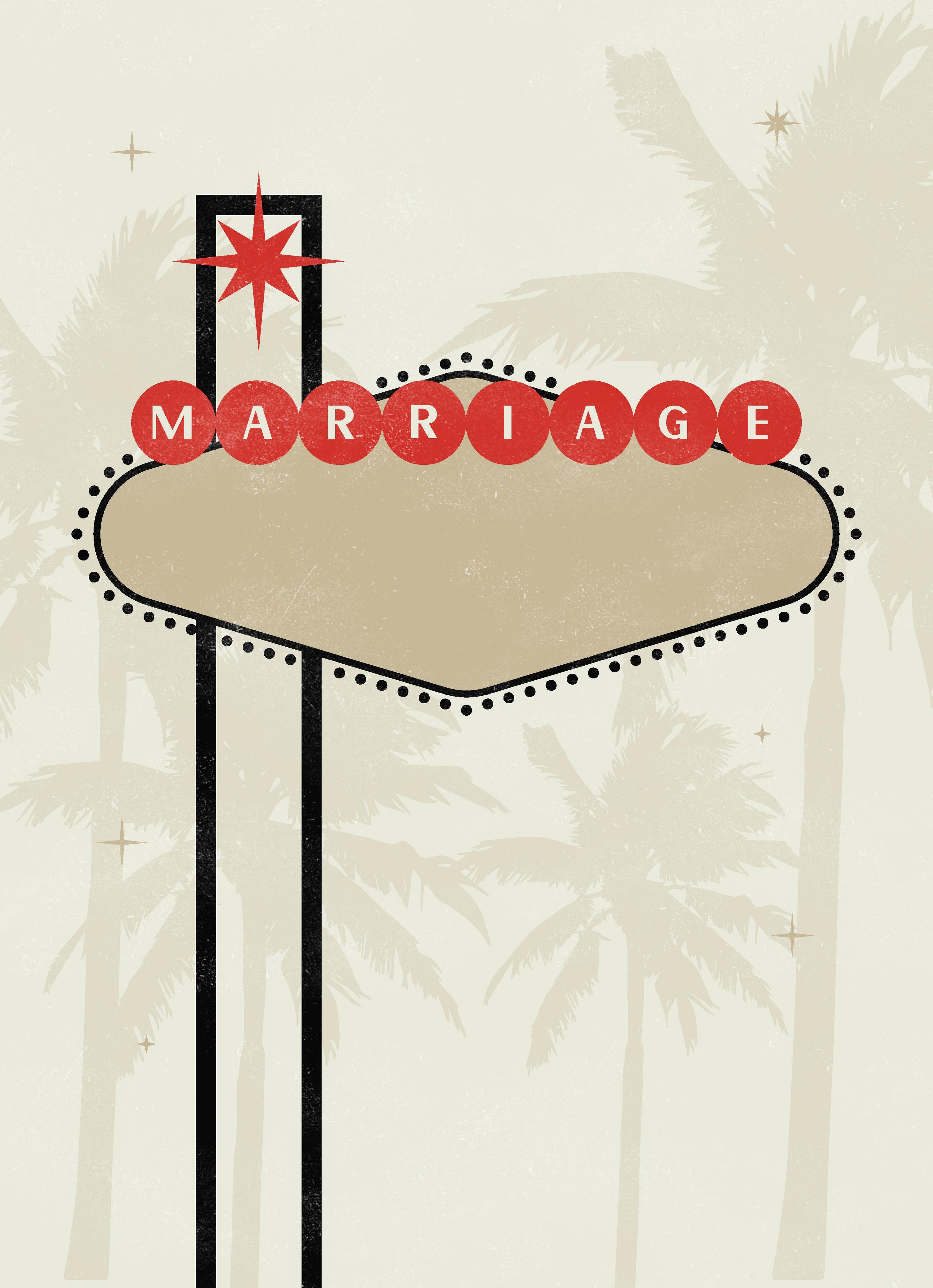 Make a bold statement with the Vegas Classic wedding invitation. Printed on luxe paper, this whimsical design features palm trees, retro typography, and the famous Las Vegas sign. Perfect for couples planning casino-themed celebrations or getting married on the Strip.