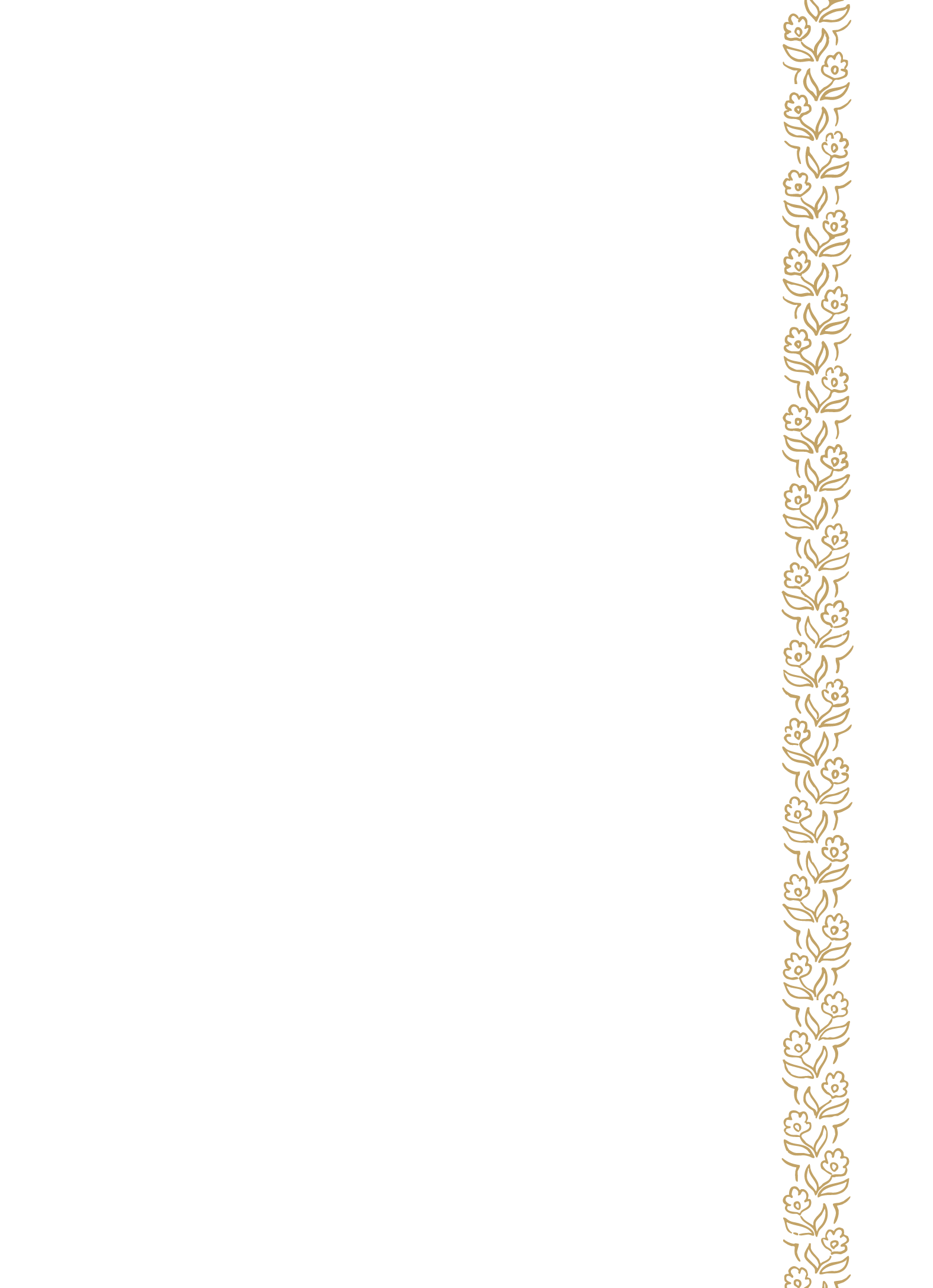 Sorsha is an elegant and romantic collection, defined by its charming etched floral borders that frame the design. The invitation features a sophisticated layout with a graceful arch of text at the top, pairing a classic serif with a delicate, flowing script for a refined look. We think it’s perfect for couples who are drawn to a design that embodies vintage-inspired luxury and timeless, gilded beauty. This suite was created in collaboration with Kimberly Morgan, a pattern artist and Louie Award-winning stationery designer based in the Rocky Mountains. Her work blends the nostalgia of childhood storybooks with the beauty of her natural surroundings, resulting in charming illustrations which invoke a sweet sense of wonder and warmth. When she’s not designing, Kimberly enjoys baking artisan sourdough loaves to share with her neighbors, and reading aloud to her grandchildren.