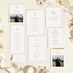 Live the suite life, AKA matching everything. Brown wedding invitation suites are a great way to express your style — create your own with everything from custom save the dates and RSVP cards to menus and programs.