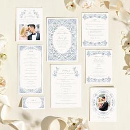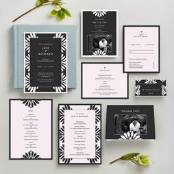 Live the suite life, AKA matching everything. Dusty rose wedding invitation suites are a great way to express your style — create your own with everything from custom save the dates and RSVP cards to menus and programs.