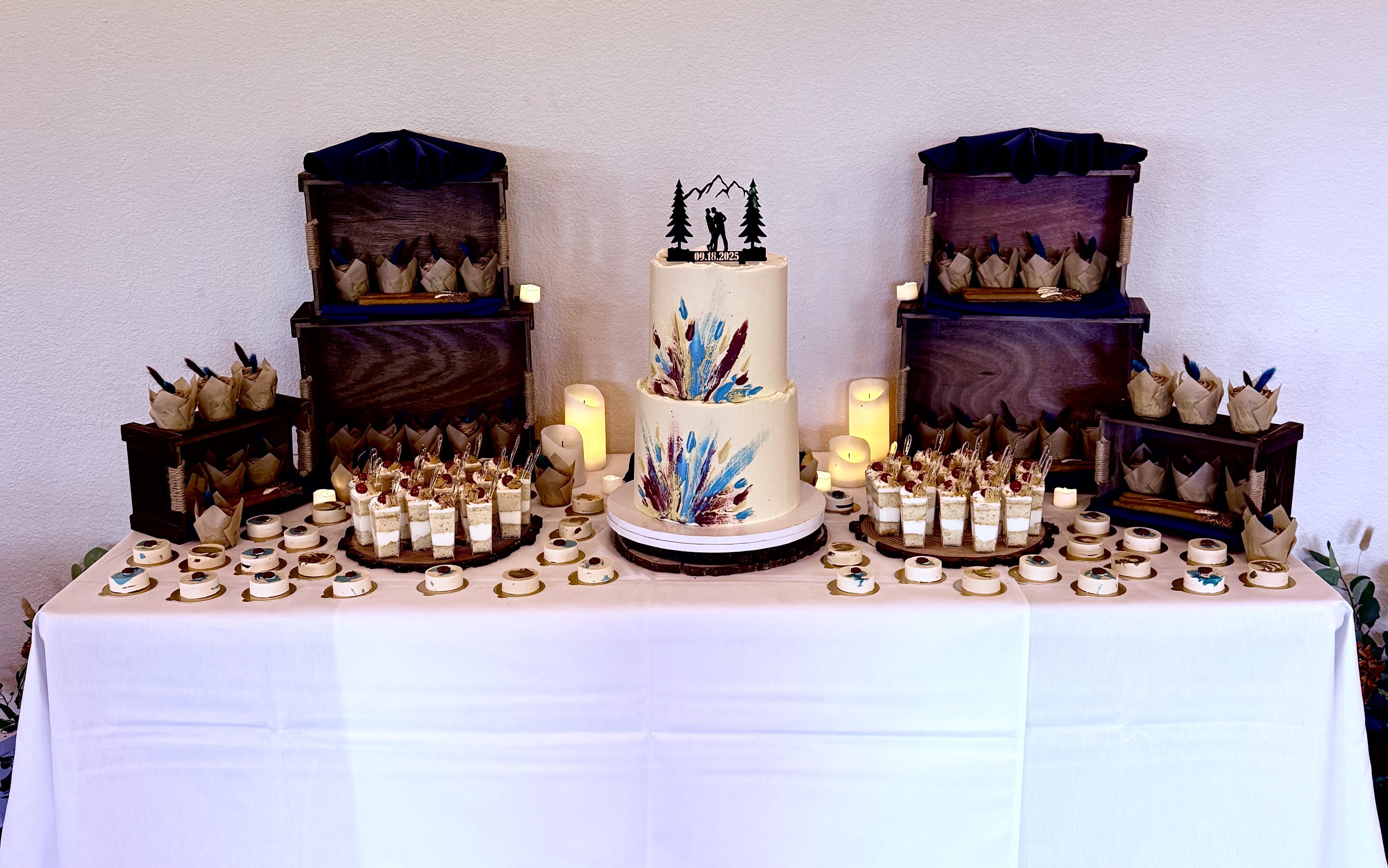 Caketini Bar Co. by Jayna & Joey was one of the most unforgettable parts of our wedding! The cake itself was absolutely incredible—moist, flavorful, and beautifully presented—but what truly made the experience magical was how unique and interactive it was. We had two full Caketini Bars at our wedding, with eight options in each category—flavors, fillings, frostings, and toppings. Guests were raving all night about how fun it was to build their own custom cake creations in adorable martini glasses. It added such a joyful, personalized touch to the celebration. I also added a mini heart-shaped cake to our order, and it was just as delicious as it was adorable. It looked so cute and felt like the perfect little indulgence just for me. Jayna and Joey were amazing to work with—warm, professional, and so responsive throughout the planning process. They made everything feel effortless and exciting. I would hire them again in a heartbeat for any event that needs cake (and honestly, every event should have cake like this!).