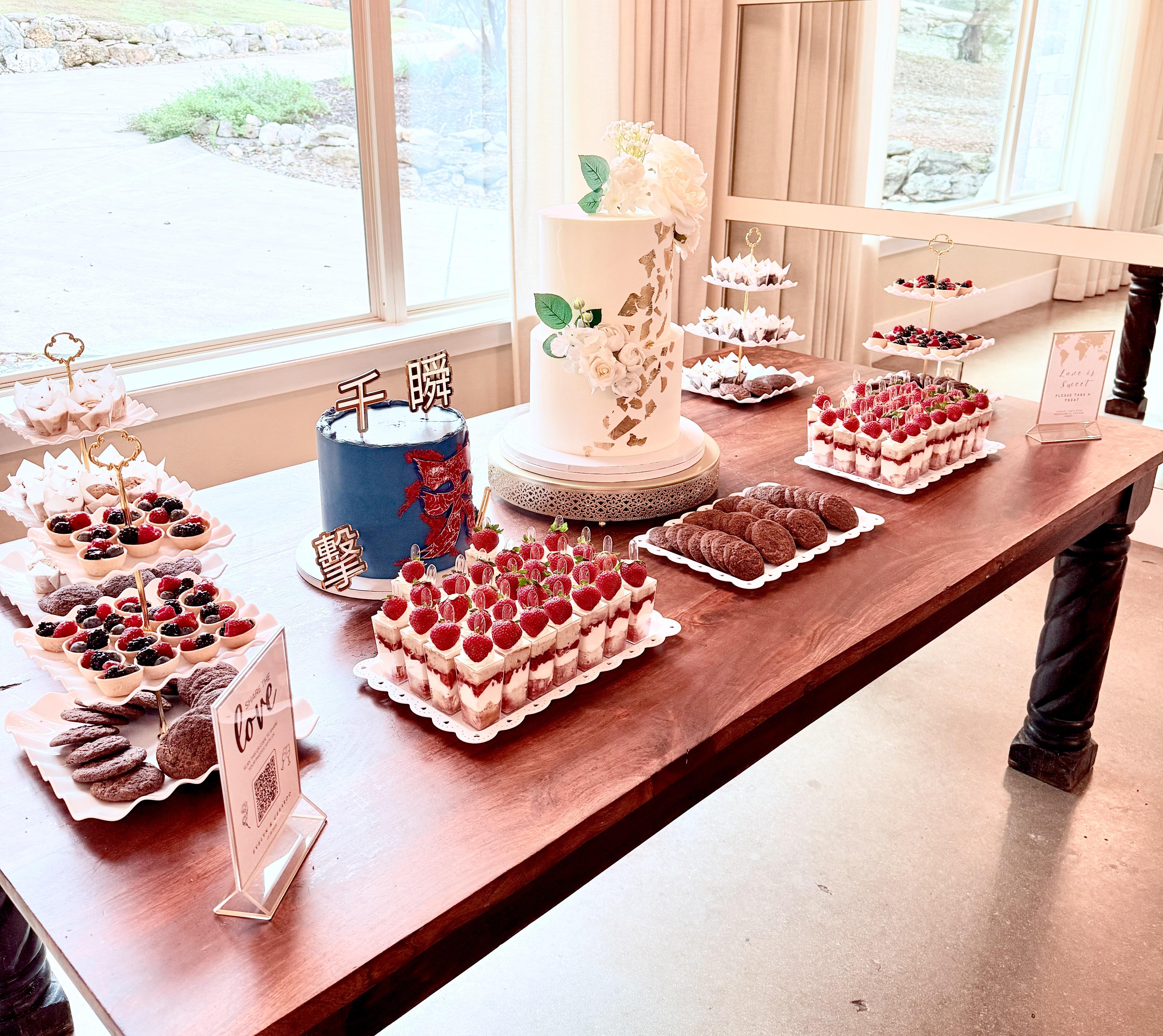 Make your wedding unforgettable with our interactive dessert services, designed to add a sweet and personal touch to your big day in Austin, the Texas Hill Country, or surrounding areas. From our Cupcake Bars to our Donut Bars to our Dessert Bars and beyond, we provide a sweet twist on tradition that you and your guests will love!