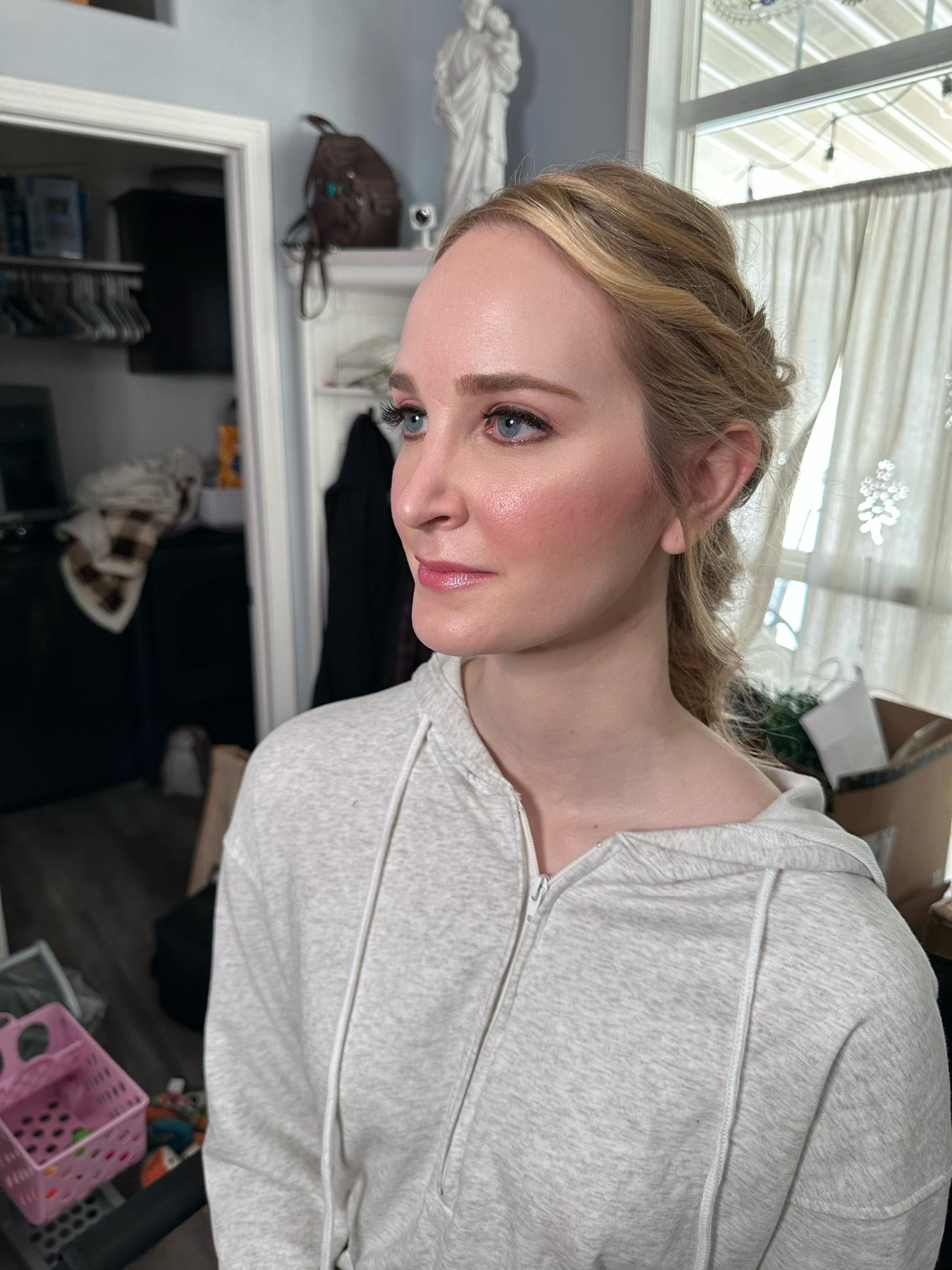 “I loved working with Jasmine for my wedding hair and makeup! From start to finish, she was super professional, incredibly responsive, and a clear communicator. Her makeup looks are beautiful and I chose to go with her signature soft glam with curled hair pinned back on one side. She did a fantastic job during the trial and the day of. After the trial, Jasmine was great at asking for my feedback and incorporating it into the final look for my wedding day. She's also mindful of tailoring her approach to your specific needs to help her work last longer. Make sure to tell her about your skin type and any specific concerns, like curls falling out of your hair easily, or oily eyelids for myself which might have affected the longevity of one eye's eyeshadow. Aside from that and a couple other minor touch ups needed throughout the day (grateful for her touch up kit!), the rest of my hair and makeup stayed all night long on my wedding day. I loved my look and thought it was even better than the trial! Even though she isn't a professional hairstylist, Jasmine really nailed it with my hair. It stayed flawless all day and night, despite the dress changes and jewelry adjustments throughout the day and I received multiple compliments on my hair! She's also easy going and nice to talk to - I really enjoyed the time spent chatting with her while getting ready in the morning. It was a great, peaceful way to start the busy day.
