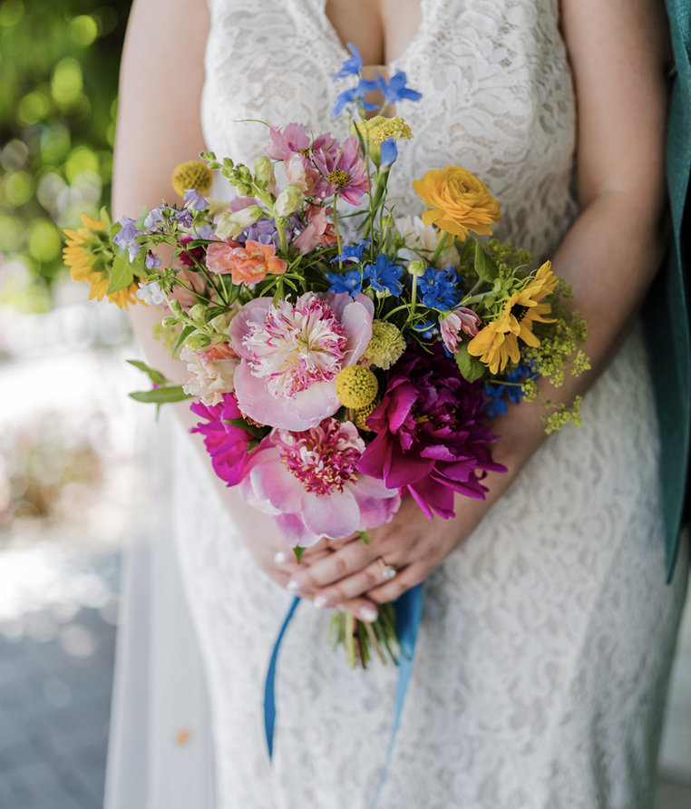 Anika is a visionary! Her gorgeous, whimsical style caught our eye and it was love at first sight. We vibed right away during our consultation. She helped us bring our vision of a playful, lush, colorful meadow to life for our July 4th wedding. We asked for flowers that evoked fireworks and wow did she deliver with those alliums! We loved that all her flowers are sourced as locally as possible, and with no pesticides. Anika was also fantastic at working within our budget, showing us ways we could stretch our funds to maximize floral impact, like reusing some of our chuppah flower installation at the sweetheart table. My bouquet was out of this world, and all the personal flowers had special touches. We felt so taken care of by Anika and her team. We highly recommend Marigolds Florals!