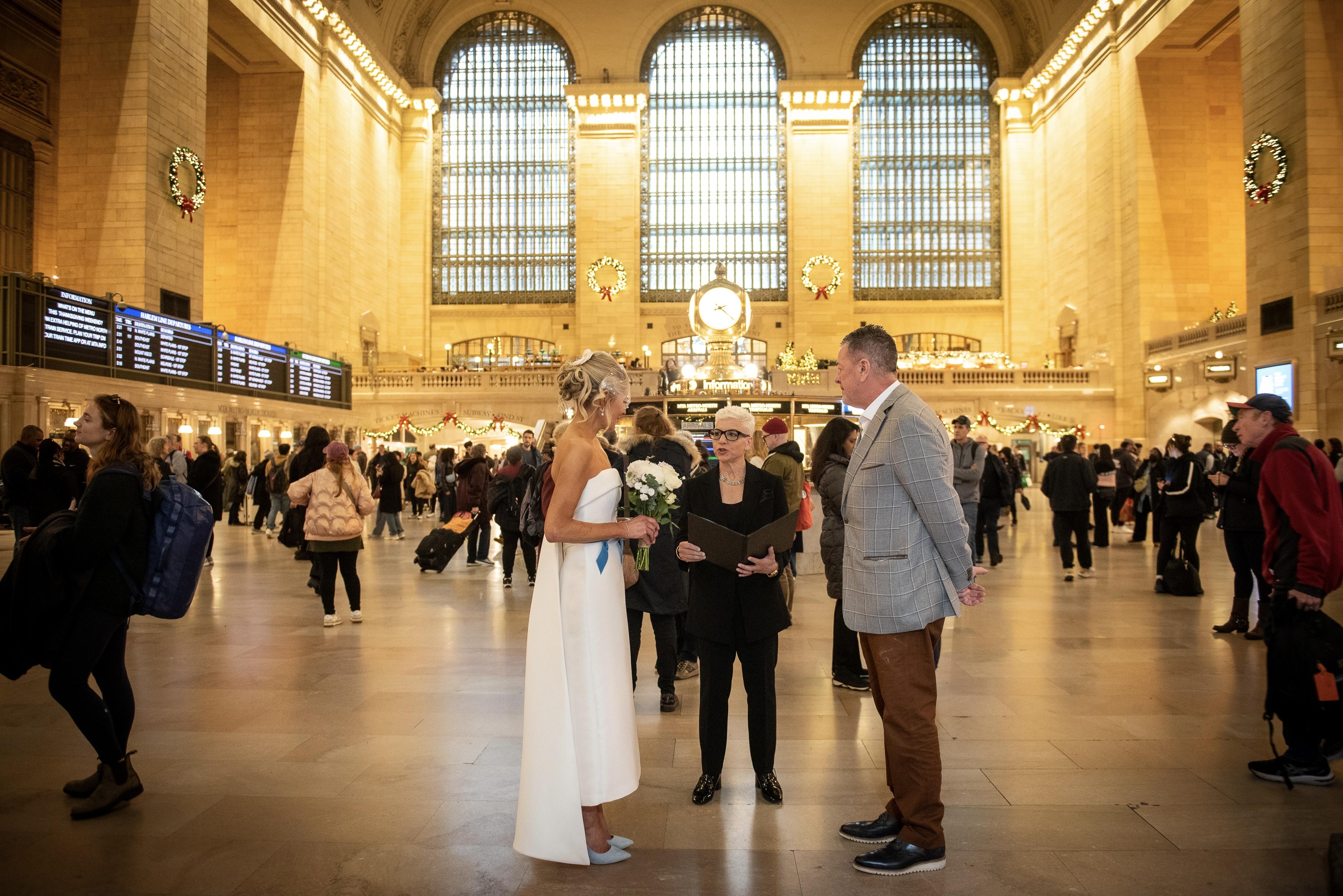 When our intended officiant was unavailable for our short-notice elopement in NYC, found Jenn on Thumbtack. She responded within a few minutes, & offered to chat that evening (at 10 p.m., no less!). I felt so comfortable with her after our conversation that I booked her immediately. Her professionalism, knowledge and enthusiasm for what she does put me so at ease - a blessing when one suddenly has to pull off an impromptu wedding in NYC, while living in another state ... with 10 days notice. She checked in with me regularly to ensure everything was moving along well, which was reassuring (when you feel you're herding cats, it's great to have a German Shepherd reliably in the wings). She knows the marriage requirements in NY well, and was a helpful resource. The contract she sent over was transparent & clear re: terms, timing, expectations, etc. I was surprised when she sent a few questions to me and my fiancé, so that she could craft our vows; I hadn't expected that kind of personal, heartfelt interest in our marriage ceremony. She then delivered to us her draft of our vows, in the event we had any edits for her (absolutely none). We met in-person for the first time at the clock in Grand Central - she arrived early (we arrived within the 15-min. grace period) and met up with our photographer. One presumes that a wedding officiant one selects online will be purely transactional - fill out the forms, say the words, sign the paper, thank you, goodbye. I hadn't expected the sudden emotion of speaking our vows, even just alone in the middle of Grand Central on the busy afternoon before Thanksgiving. Jenn was so on top of everything - selecting, with our photographer, the perfect spot for our ceremony, in the Grand Hall; handling the little things one might not have thought about (where do I set down my wrap/purse/bouquet, while I say my vows?) ... She was so warm and had made such effort to learn about us in a short period of time. I was so focused on my fiancé and on her during the ceremony that I didn't even notice the crowd of people who'd surrounded us during our vows (until we kissed, and they cheered). I'm so glad that she was the person to marry us. She enabled me to relax and let the joy of it all to happen, without worrying about a thing. I'm calling it the, 'Jenn Vows Bubble' - even amidst hundreds of strangers, it felt as though our wedding was taking place in a private little space with just Jenn, me and my (now) husband. I could not recommend Jenn more highly as an officiant!