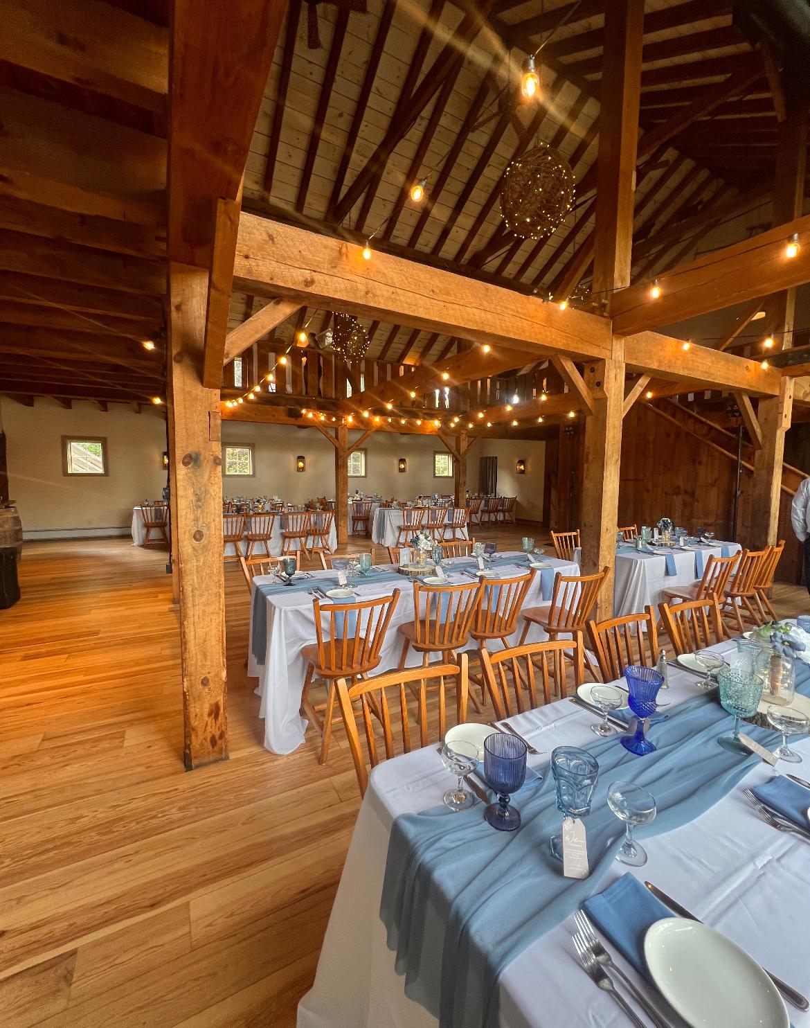 Nestled in the heart of East Bridgewater, Massachusetts, Mistletoe Acres Tree Farm is a family-owned property rich in history and natural beauty. Our story began over a decade ago with a passion and vision for creating a space where memories are made. We have worked hard to bring Christmas trees and Holiday magic to families each winter since December 2012. Today, we are proud to also host weddings and other events year round in our beautiful timber frame barn. Surrounded by towering pines and birch, maple, and beech trees, our farm offers a picturesque setting for your wedding or private event. Our timber frame barn with soaring cathedral ceilings and elegant wrought iron chandeliers is designed to provide a beautiful blend of rustic charm and modern amenities. The interior barn comfortably seats 120 guests, with an outdoor tent rental available for larger events.