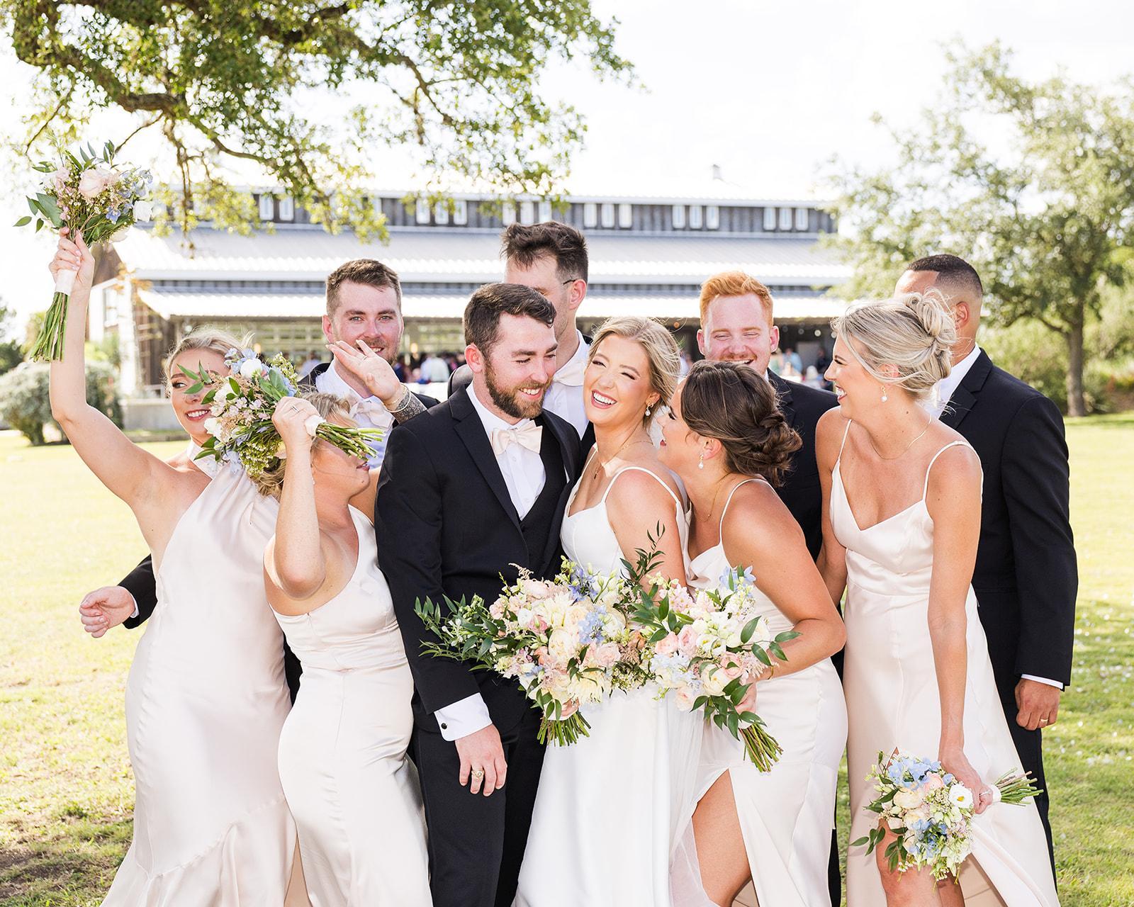 “My husband and I found Allegro while searching for venues in the Hill Country, and Allegro had just reopened under new management. We scheduled a "sip and see" with venue manager, Amber, and absolutely fell in love with everything about it! This venue is awesome as everything is right there including bridal/ groom suites, some lodging accommodations if you need them, the chapel, covered cocktail hour space, and a large reception space. Allegro has everything you love about hill country, with lots of space, Texas charm, and natural beauty. Truly, the selling point was Grace chapel, where the natural beauty won us over. Amber and her team were fantastic throughout the planning process, offering us suggested vendors when needed, inviting us to open house/ vendor gatherings, etc. and allowing us to schedule an additional tour with our family who wanted to see the space as well. The Allegro team added a lot of really great options throughout our planning as well, including some decor pieces, greenery wall for backdrops, candle votives, and GOLD CHARGERS! It is also close enough to the hotels in dripping springs, so guests have options on where to stay. Pro tip: book blocks as soon as possible! Additionally, if you have a larger bridal party, the bridal suite is fairly tight for 10 people, so utilizing another space could be helpful. All in all, Allegro surpassed our expectations, and we could not be happier with how our wedding went back in October 2023. When I tell you to book this venue.. really, BOOK THIS VENUE, you will not regret it - with beautiful grounds and the most amazing team committed to making your wedding the best day ever. I am so thankful we came across Allegro and will recommend it to everyone! Side note: the venue is undergoing renovations currently which I think will somehow make this dreamy venue even more beautiful for future brides.”