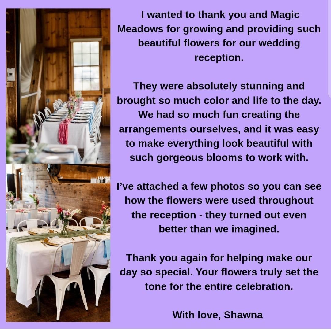 Hi there. I'm Michelle, owner of Magic Meadows Flower and Herb Farm. We're here to connect our flowers with those who want to shop fresh, local flowers without breaking the bank. We offer beautiful, seasonal flowers in bulk buckets at wholesale prices, as well as many a la carte options. From the moment your order is booked, we're working on your order, whether that be ordering seeds/bulbs, planting, planning our planting dates around the targeted harvest time for you, and most importantly - growing and tending to the flowers. We pride ourselves on growing a beautiful variety and want to provide you with a memorable local flower experience.