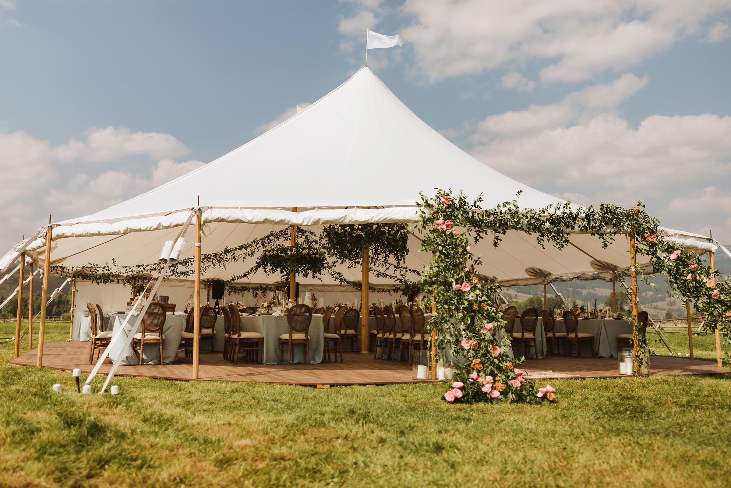 Trail Creek Pavilion at Sun Valley Resort features a beautiful tented reception area with breathtaking views of Bald Mountain. You'll get panoramic vistas and premium culinary options right in the heart of Idaho's famous Sun Valley - perfect if you want that quintessential mountain experience with upscale amenities.