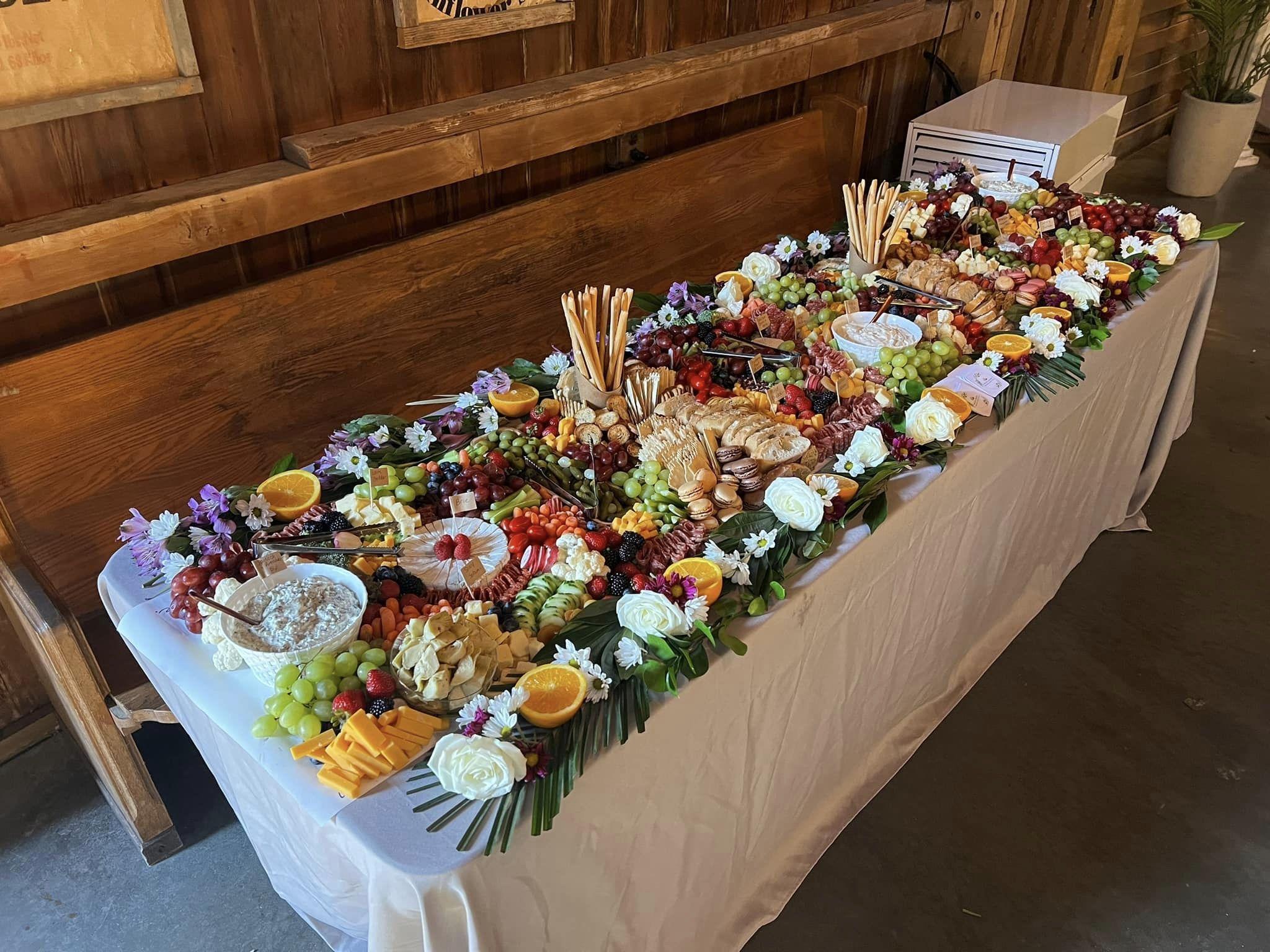 We are a locally owned catering business specializing in elevated charcuterie boards, dessert displays, and baked goods for weddings and special events. Our offerings are ideal for cocktail hours, bridal suites, getting-ready rooms, welcome displays, and dessert tables. Our boards are beautifully styled, customizable, and designed to complement the aesthetic of each couple’s day.