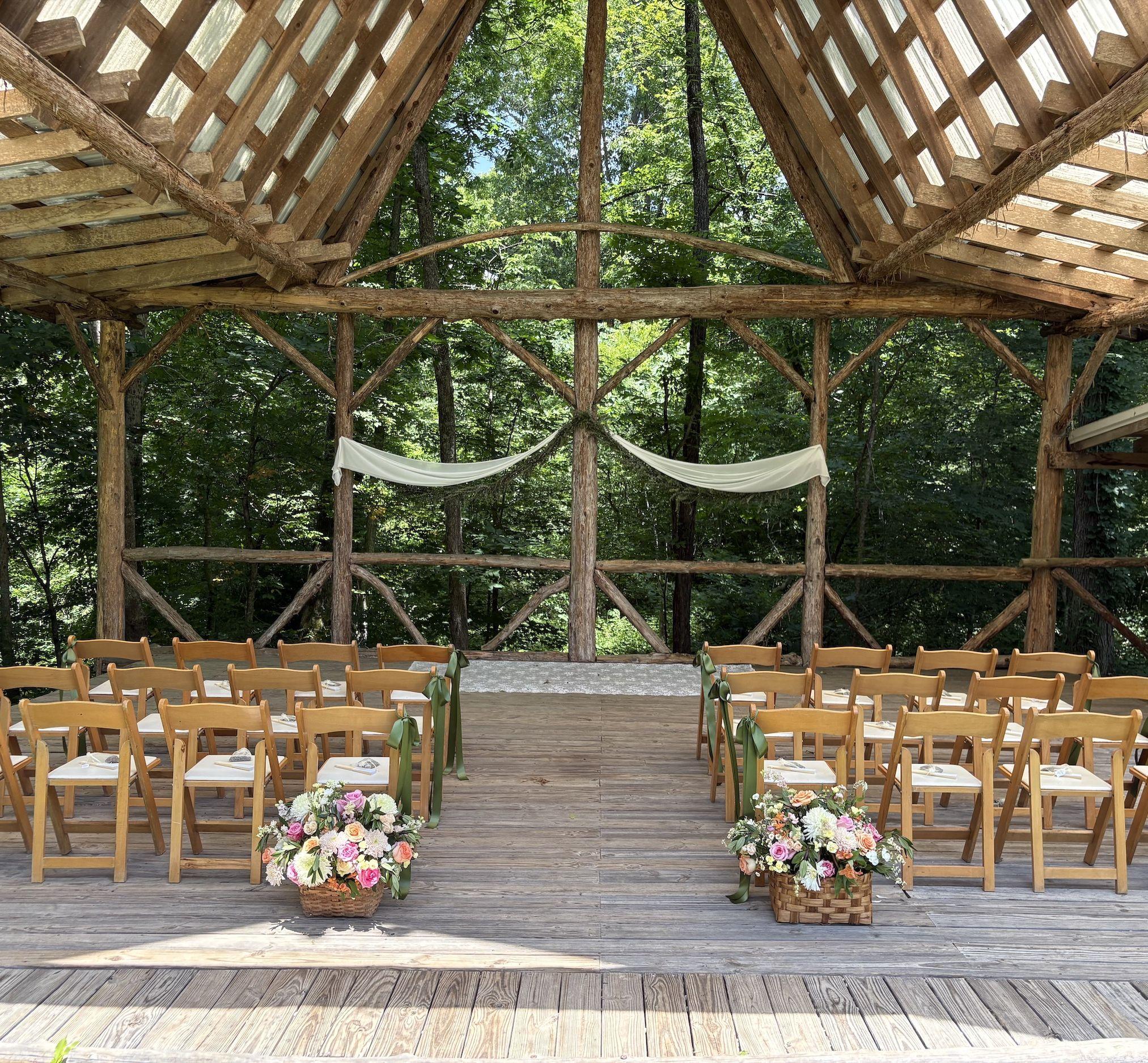 An incredible weekend at the most gorgeous venue!! The ceremony spot was beautiful, with panoramic views of the Kentucky landscape. The reception area in the pavilion was perfect and big enough for all the tables, dance floor, and stage for live entertainment! We absolutely LOVED being able to stay on sight in the farm house and cottages the day before and night of- relieved so much stress of not having to drive around the day of. Brenda and Pete were great hosts, and offered just about anything we could need! There’s so much more I could say. 1000/10 would recommend working with them, and having your special day at this special spot!