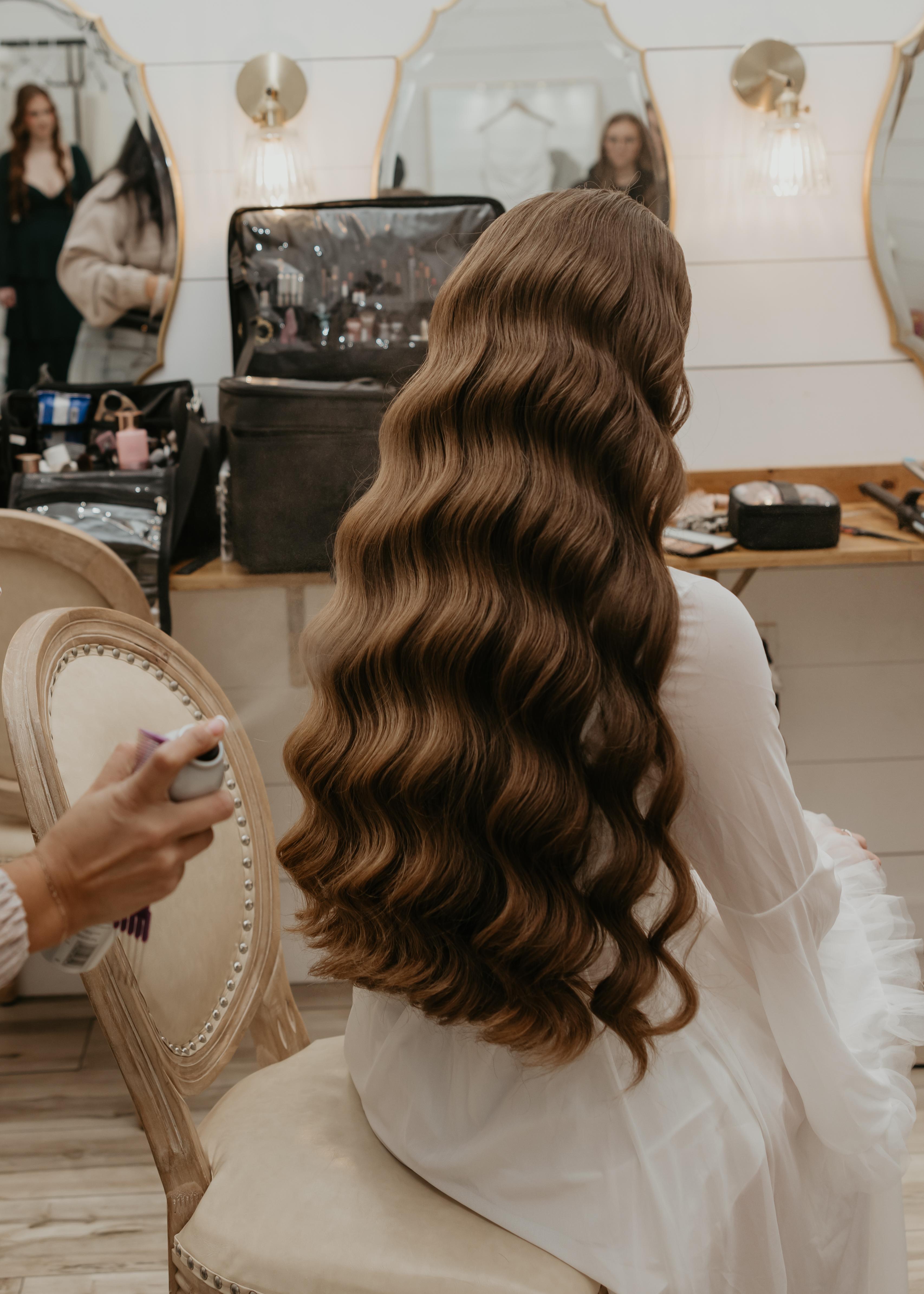 “I booked hair and makeup for my engagement pictures and wedding day, along with spray tans for engagement pictures, bachelorette party, and wedding day with TSS. If I could give Kaleigh and her team (Mia & Monica) 10 stars I would! They went above and beyond to make my mom, MIL, bridesmaids, and myself feel beautiful on my special day. I've had my hair and makeup done before and have never liked it so I was nervous about finding the right team that would listen to my requests and help me look and feel my best on my wedding day. Kaleigh listened to me during my trial and day of and we tried lots of different things until we go it exactly how I wanted it. I'm so appreciative of her because normally it can feel uncomfortable to make requests or ask for things to be changed and she made me feel comfortable get it just right! I also was very appreciative of Monica and Mia for working with my mom and MIL as they were nervous about wedding makeup on mature skin. Both looked INCREDIBLE and loved how they looked! I booked a second look and touch ups with Kaleigh and having her by my side during pictures and before/after ceremony to help re-apply lipstick or fix my hair was the BEST decision I could've made and I would recommend this to every bride! I didn't have to worry if I had smeared lipstick or a rouge piece of hair during pictures so it allowed me to be totally stress free. My second look we transitioned to a pony tail and it lasted through hours and hours of dancing! For my engagement pictures, it was pouring rain and I was worried about how my hair and makeup would hold up and Kaleigh and Mia worked their magic and my hair held without falling and makeup stayed in place even in the pouring rain! I cheered in college so I'm an avid spray tanner and the spray tans TSS did were the best spray tans I've ever had. They lasted a full week and a half before fading and the color was perfect, no orange in sight. Overall, I can't recommend TSS enough. I'm so grateful for their professionalism, quick responses, kindness, and talent! I will be using TSS in the future for spray tans and any special events.”