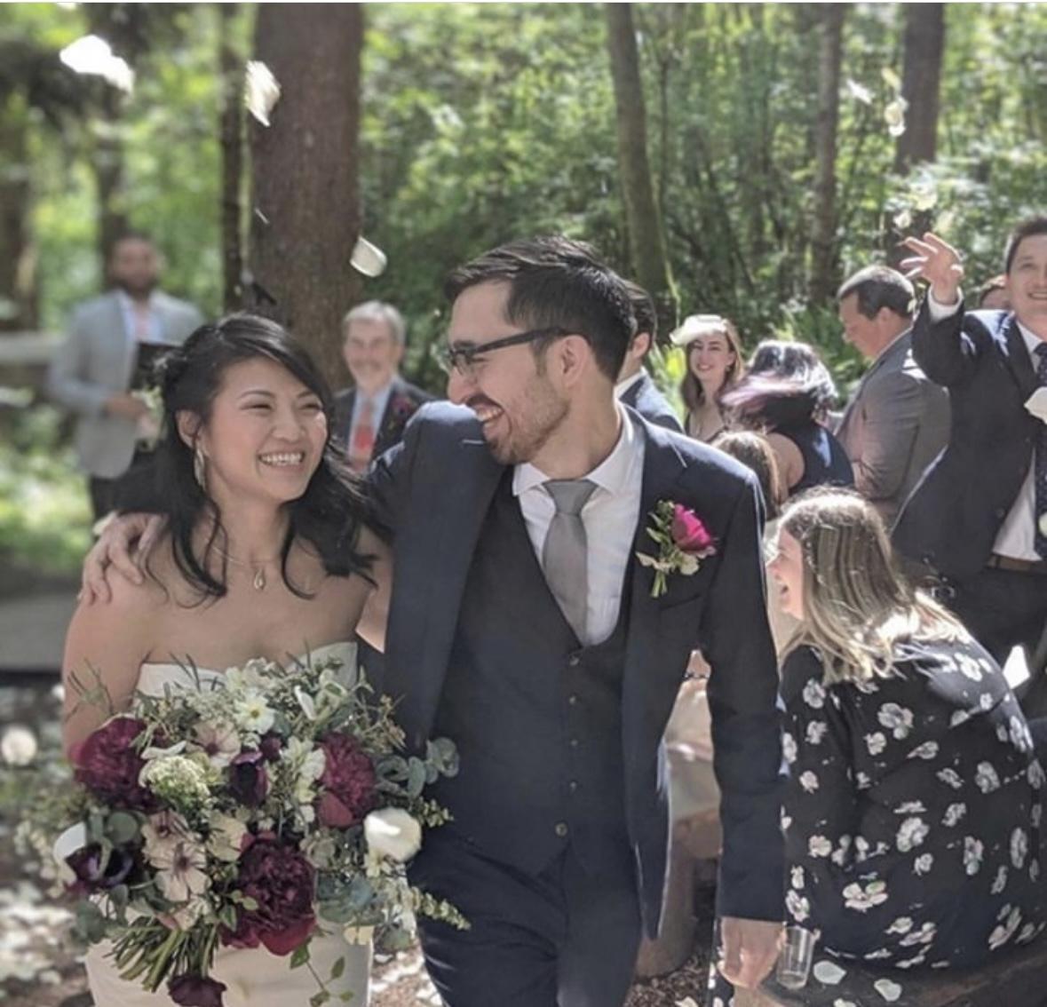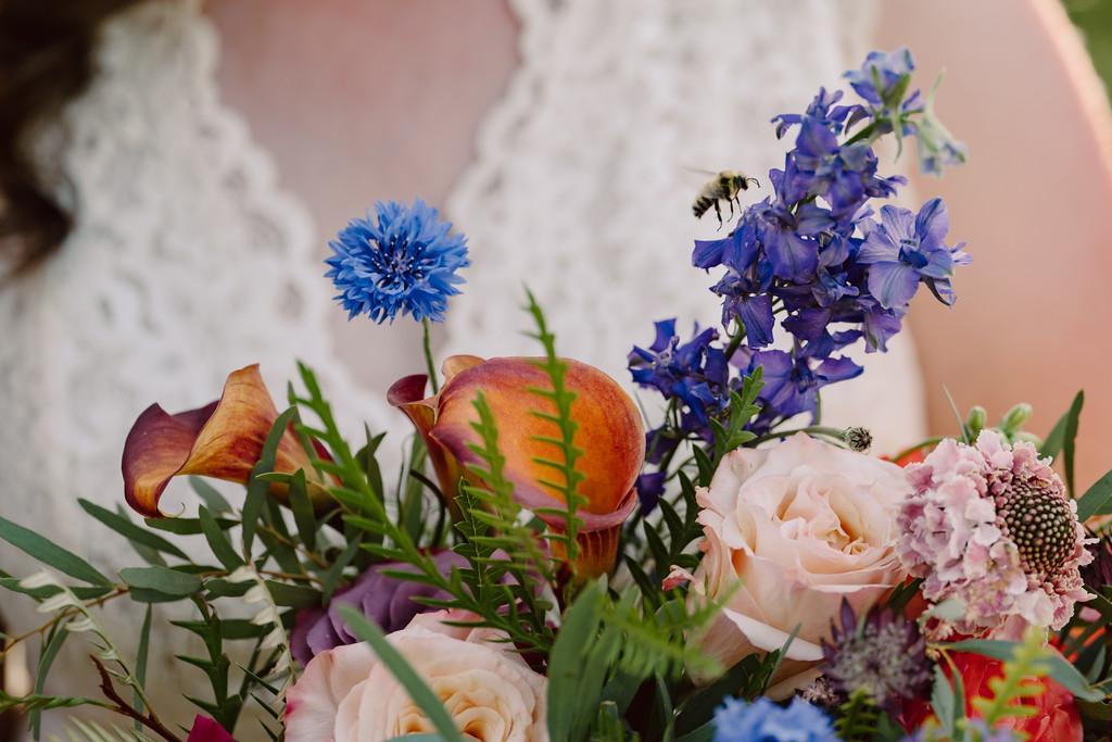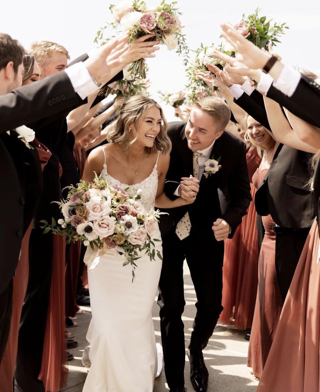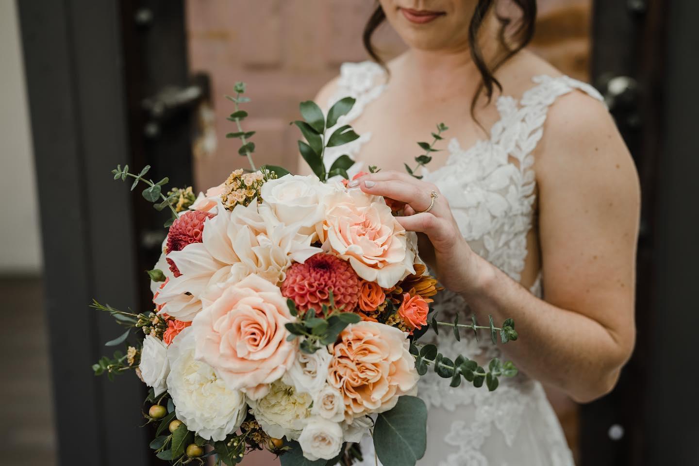 When deciding on which florist to use, it was pretty easy to choose Meghan after meeting with her. Her joy, care, experience, attention to detail, and beautiful arrangements were all shining highlights of what she would bring to our day - and boy did she! We loved all of our flower arrangements, bouquets and boutonnieres, and got so many compliments on them. Meghan was also so helpful and attentive to my bridal bouquet - wrapping the handle in lace from my Mother’s wedding dress and pinning my Dad’s charm so that he could walk me down the aisle with my mom. She even helped give advice about what ties would look good with the florals! And on top of it all, we really appreciate how she supports awesome local non-profits. Thank you, Meghan and Twisted Bramble team, for helping make our wedding day shine and pop with such beautiful florals!