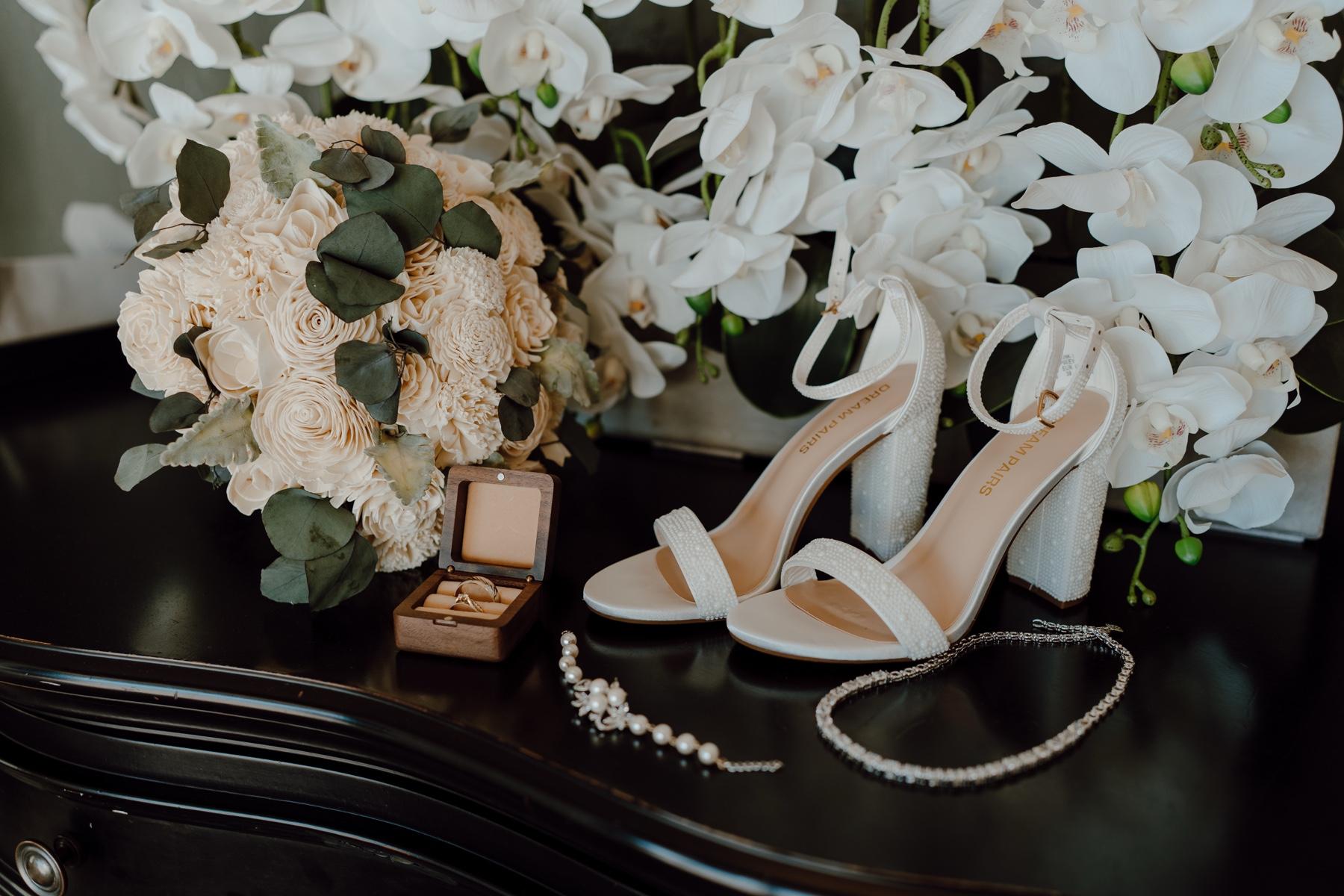 Jennifer at Wood & Word Blooms was amazing to work with, and everything looked stunning! We got so many compliments on our arch swags, corsages, boutonnieres, and bouquets! The ability to completely customize the flower colors to perfectly match the wedding colors really ties the whole look together and makes everything flow seamlessly. Beyond the colors, there’s so many unique flower shapes and sizes to choose from, there really is no limit to what can be done to suit your wedding. Jennifer was great at providing us with design aid in order to help create our vision and bring it to life. The best part is that now we have them to keep and display forever, looking as good as the day we got them!