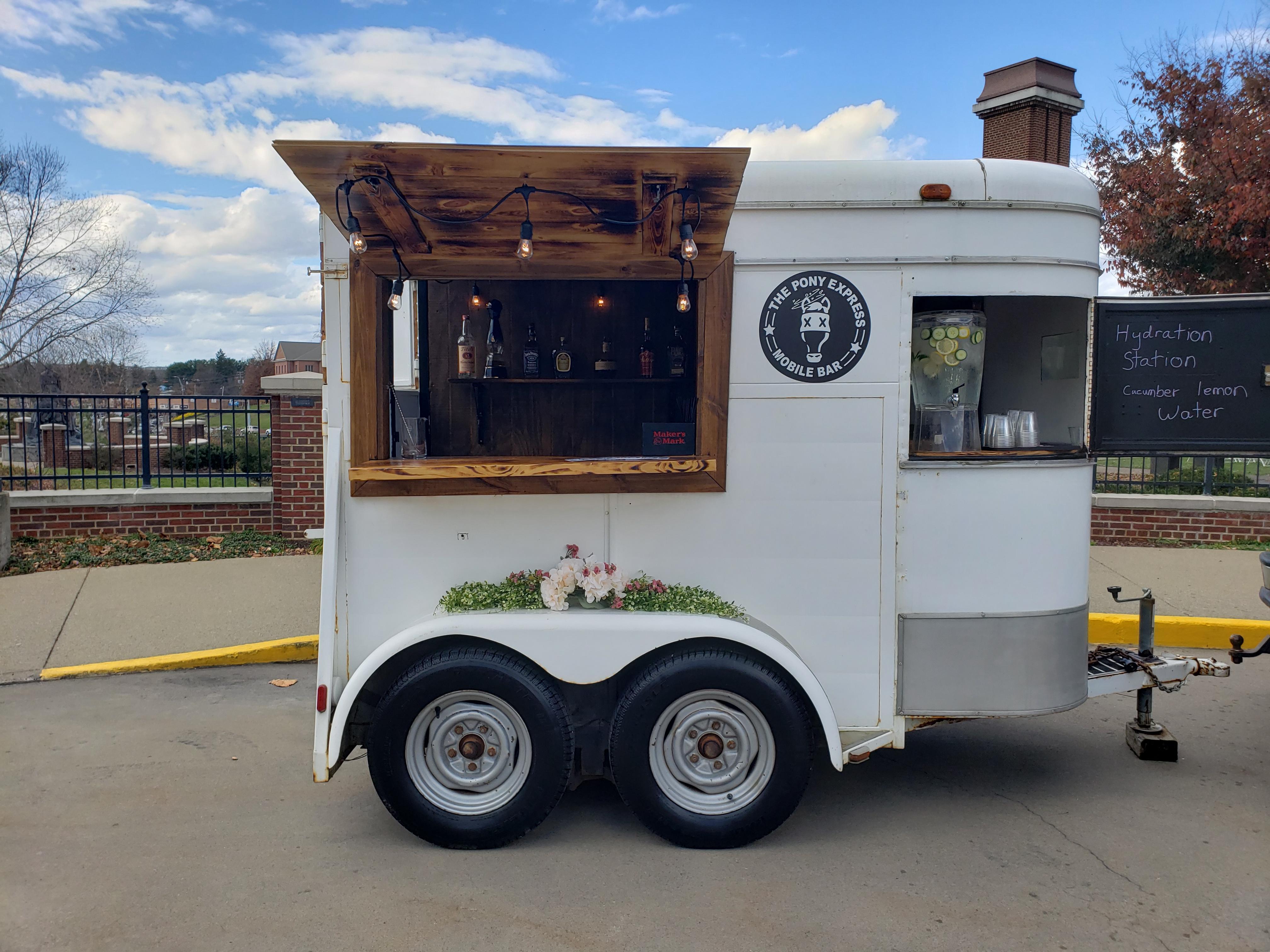 My name is Chris and I have been doing satellite bartending services for over 20 years. Our Pony Express mobile bar has just joined the family this year. With the Pony Express we can bring the party to you with full bar setup with remote power and water usage.