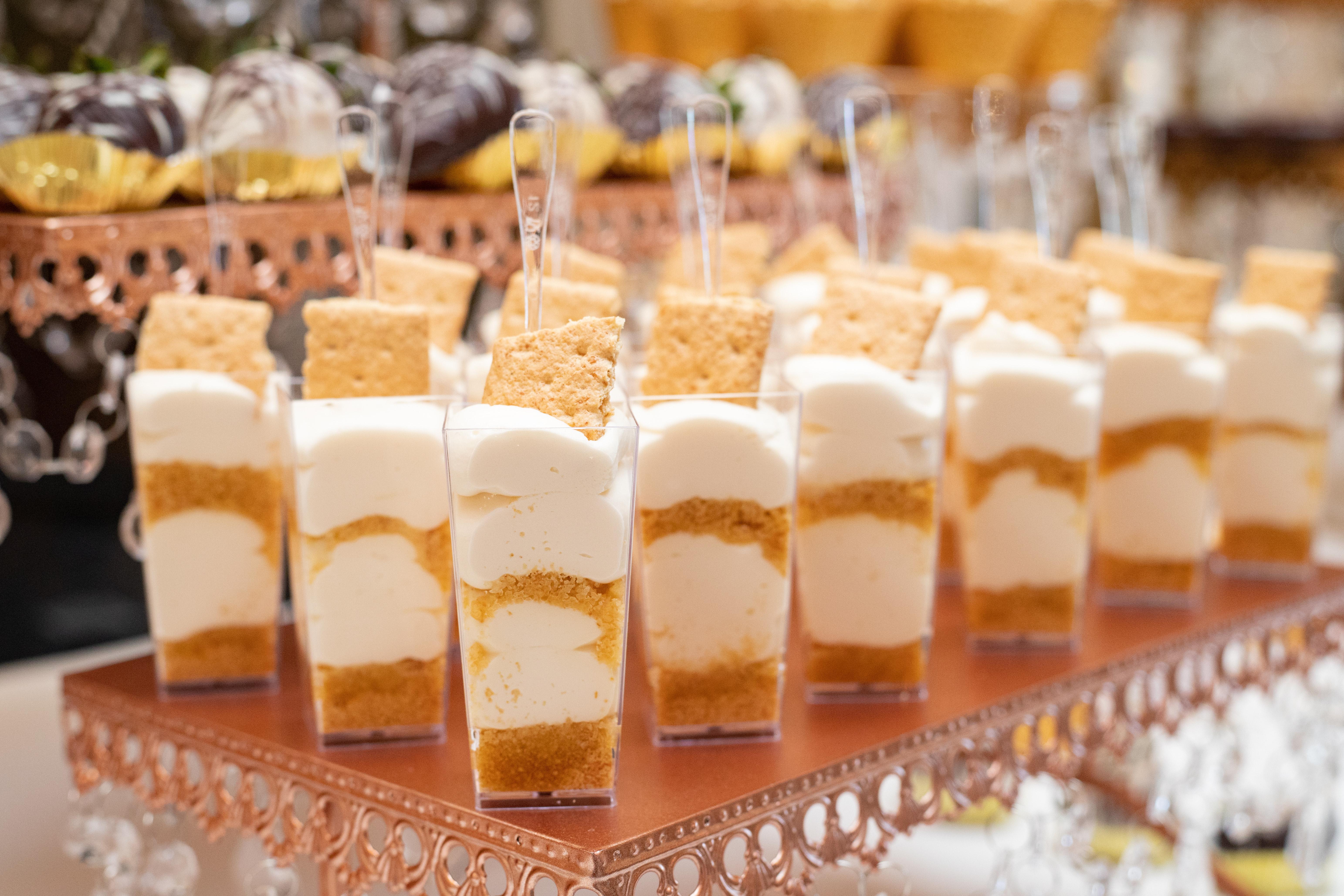 Contact us today to inquire about your special day! 321- 557- 5217 We specialize in custom dessert bar setups designed to fit your vision and your budget. From full-size desserts to mini and bite-size treats, we offer a wide variety including cheesecake or Key lime pie as an alternative to traditional wedding cake. Our menu features handmade chocolate truffles, chocolate-covered pretzels, cake pops, brownies, strawberry crunch tres leches cupcakes, filled chocolate cupcakes, mini pineapple upside-down cakes, and more. We don’t do wedding cakes — just unforgettable desserts. Custom orders welcome!