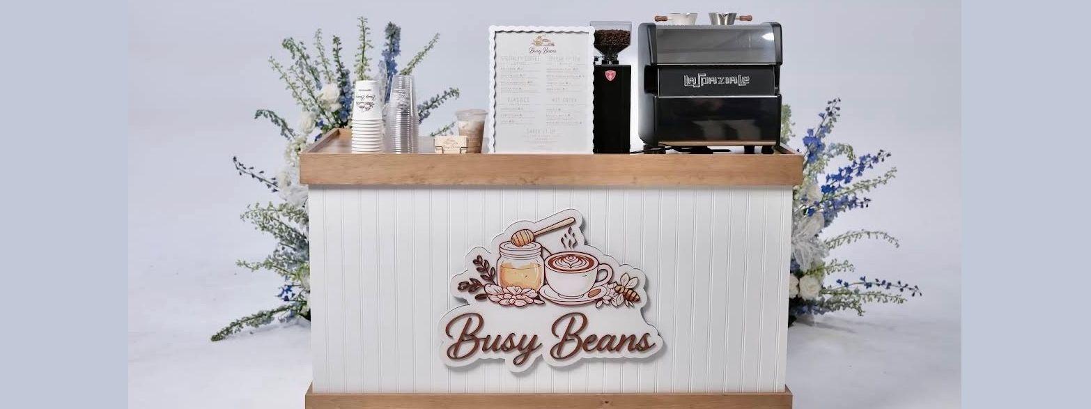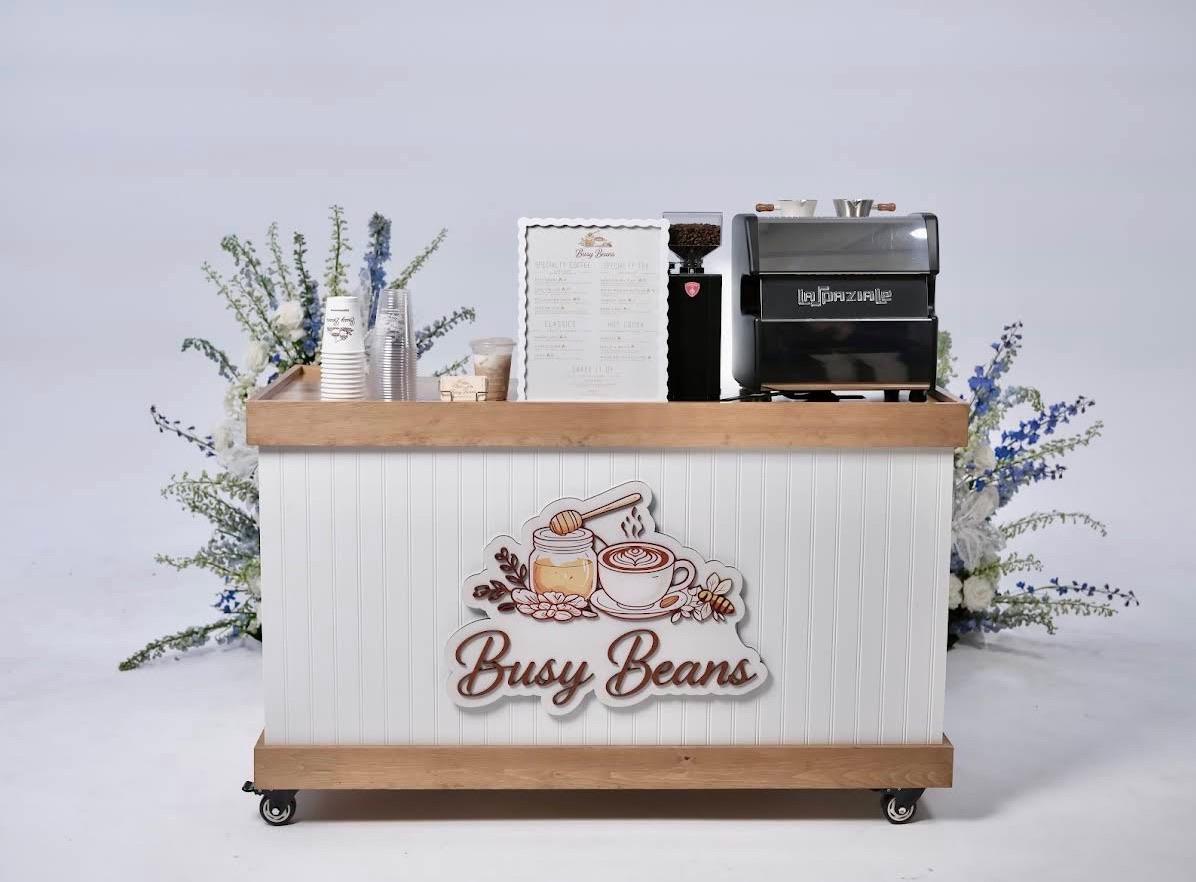 We're Mark and Kristina, the husband and wife team behind Busy Beans Coffee, a mobile espresso cart serving weddings and events across New Jersey and the Philadelphia area. Mark pulls the shots; Kristina runs the show. Between the two of us, we can serve up the party with a fully self-contained commercial setup, no venue equipment needed, just an outlet and some space. We bring custom signature drink menus, $2M liability insurance, and the kind of genuine hospitality that makes a vendor feel like a guest. Packages are customized based on your event size and needs. We'd love to be at your wedding!