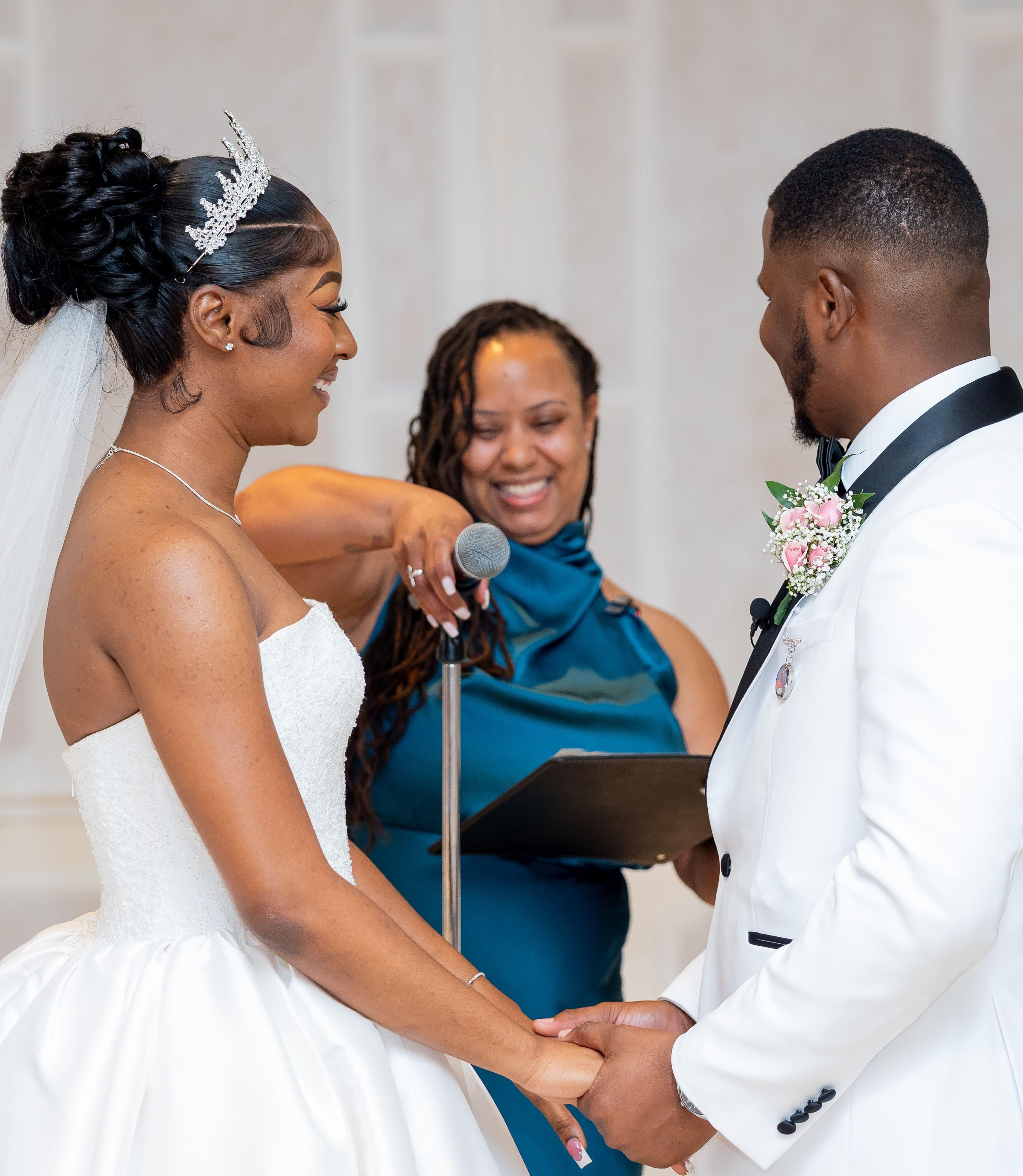 On the wedding day, Bill arrived at the venue with time to spare. He was well versed in the process of signing the marriage license and walked us through it. At the ceremony, he spoke loudly, clearly, and with a warm expression. And he stayed for the cocktail hour and spoke with some of our guests, who all told us they enjoyed his conversation.