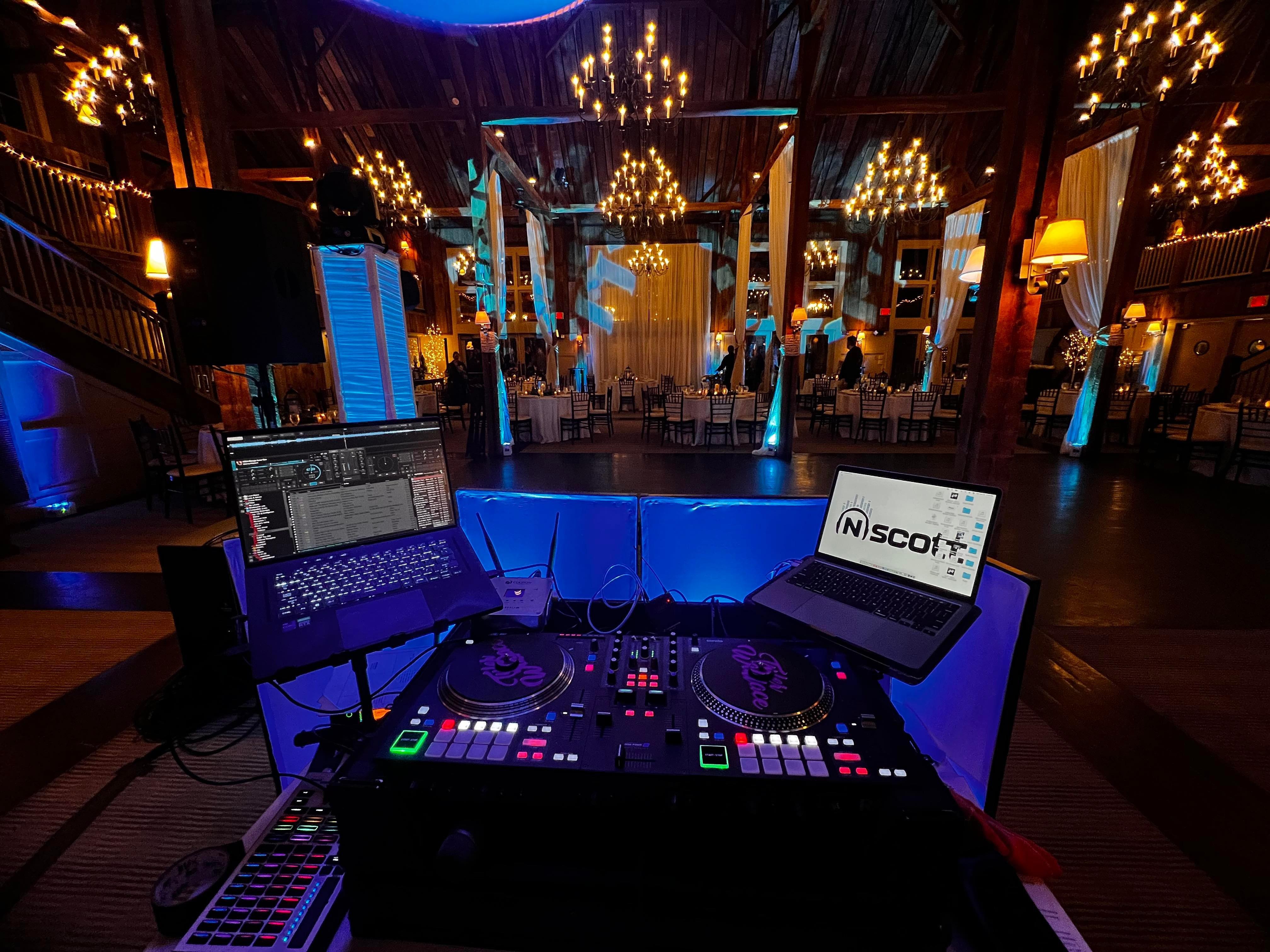Justing was a fantastic DJ! We gave him a short list of must-plays then let him do the rest, and he was great at reading the room and playing what the people wanted. He took requests from guests if they fit the vibe and was totally okay saying no too which is exactly what we wanted. We even had some guests asking for his playlist before the night was over. He brought tons of speakers and lights, and even some wireless speakers to play the same music in multiple rooms, including outside on the deck for cocktail hour. Everything went off without a hitch. We also got the photo booth add-on which ended up getting a ton of use and people loved it. Sawyer was manning the booth and 5 stars to him as well!