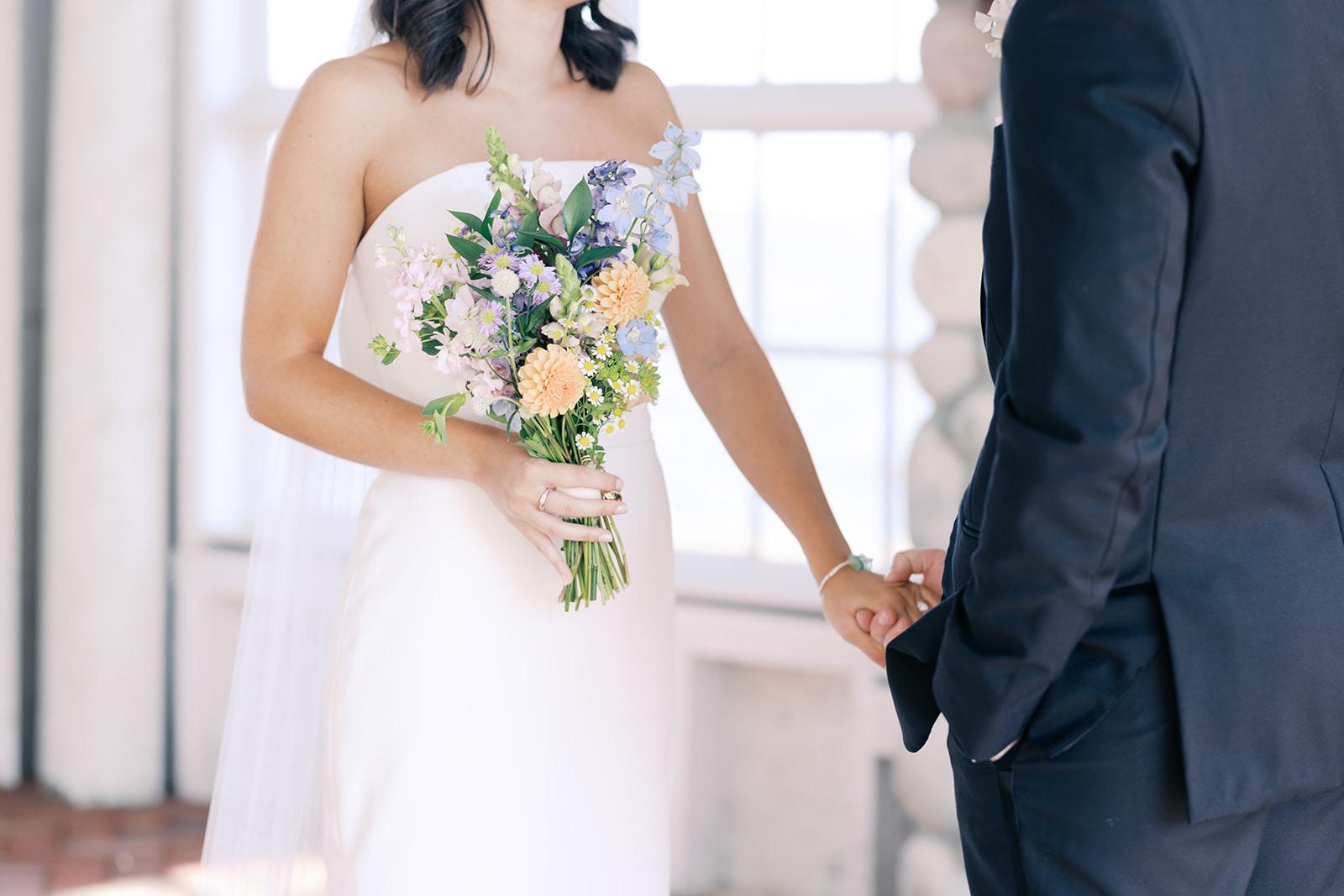 We used Addiction Florals for our bouquets, boutonnieres, and corsages. Everything came out beautifully! Kristine was able to find flowers that perfectly complemented the girls' dresses and matched my vision for minimal greenery and pops of color.
