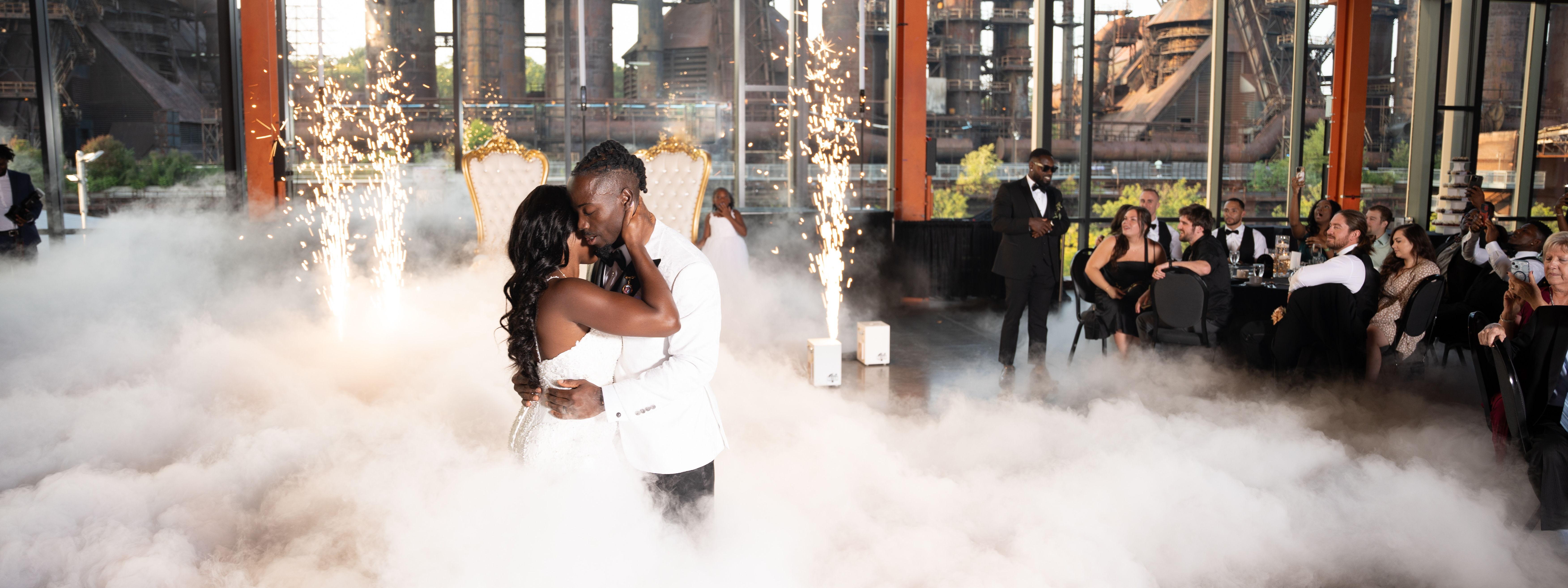When my husband and I started our wedding planning journey, we wanted to find a DJ that would be able to play music form both my culture (Haitian) and my husbands (Puerto Rican). During my search, his business popped up on IG. I went through his IG profile and knew he was the one I wanted. I sent his profile to my husband and he sold. What also sold us was all the extra services he had! Everything all in one place. In all I booked the sparklers, smoke machine, 360 Photo Booth, an Emcee, and gobo lights. My first dance, OMG. Guests are sending me videos they took. Being in the experience was one thing. Watching the videos, I couldn’t stop crying at how beautiful it turned out. The smoke machine and sparklers just brought everything together. Everyone RAVED about the 360 booth. And the MUSIC. We didnt stop moving all night. I got so many phone calls that week about how great the music was, how sore people were from dancing all night lol. We had a diverse group of people and he was able to reach everyone. Soooo glad IG was listening lol. Thank you so much DJ Jeanyo!