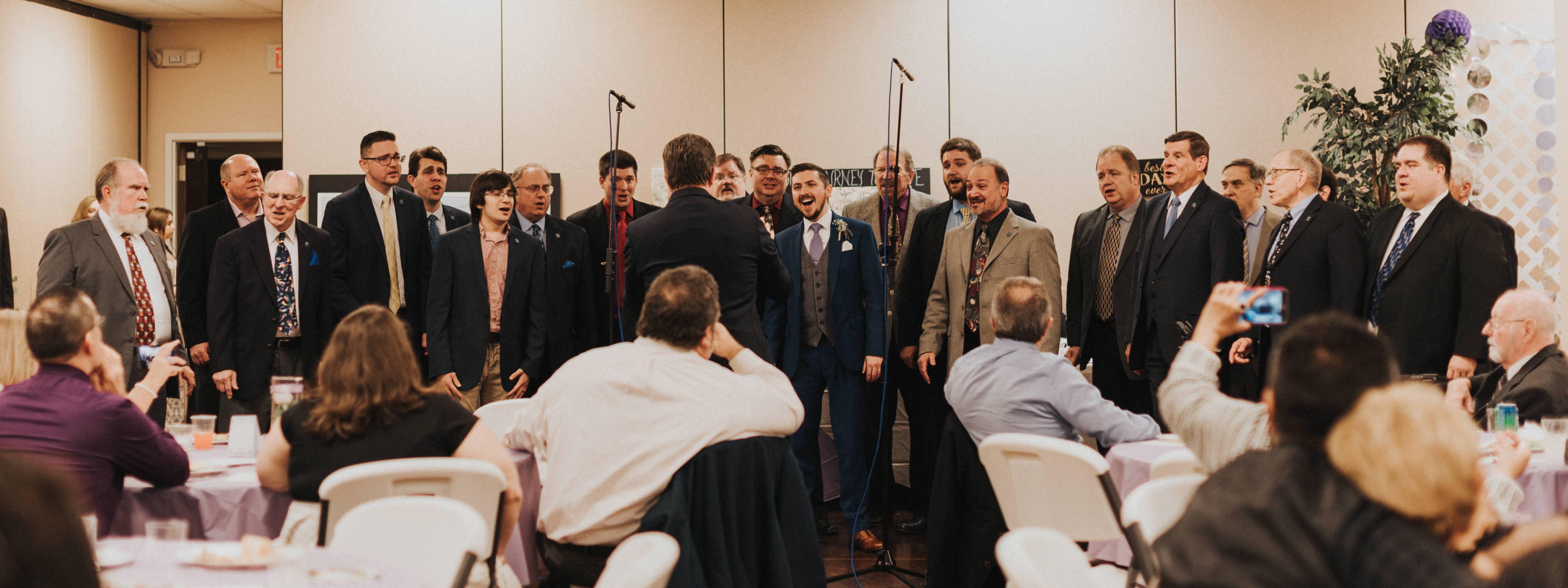 Barbershop harmony is one of the true American artforms. We add that touch of tradition and nastolgia while featuring top-notch musicianship and modern fun. We are flexible to fit any budget or time length, from a quick quartet serenade to full chorus concert. Your guests will not soon forget the unique sound of four-part a cappella harmony.