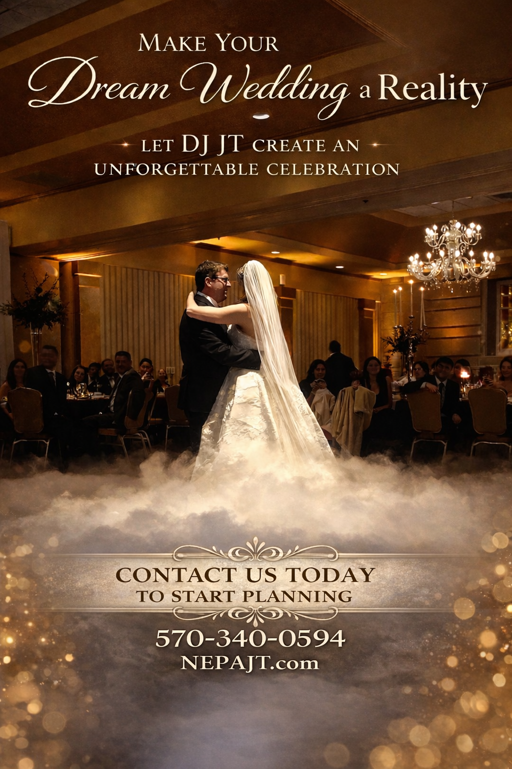 DJ JT started helping couples make their dreams for their big day a reality in 2008 in New Jersey and has been doing so consistently ever since. Most recently opening up an office in Dickson City, PA to serve the north east region with class and elegance. Since opening his office he has won the Scranton Community votes Platinum award as the area's top DJ back to back years in 2022 and 2023. Contact us today to see how we can help make your event one to remember for a lifetime.