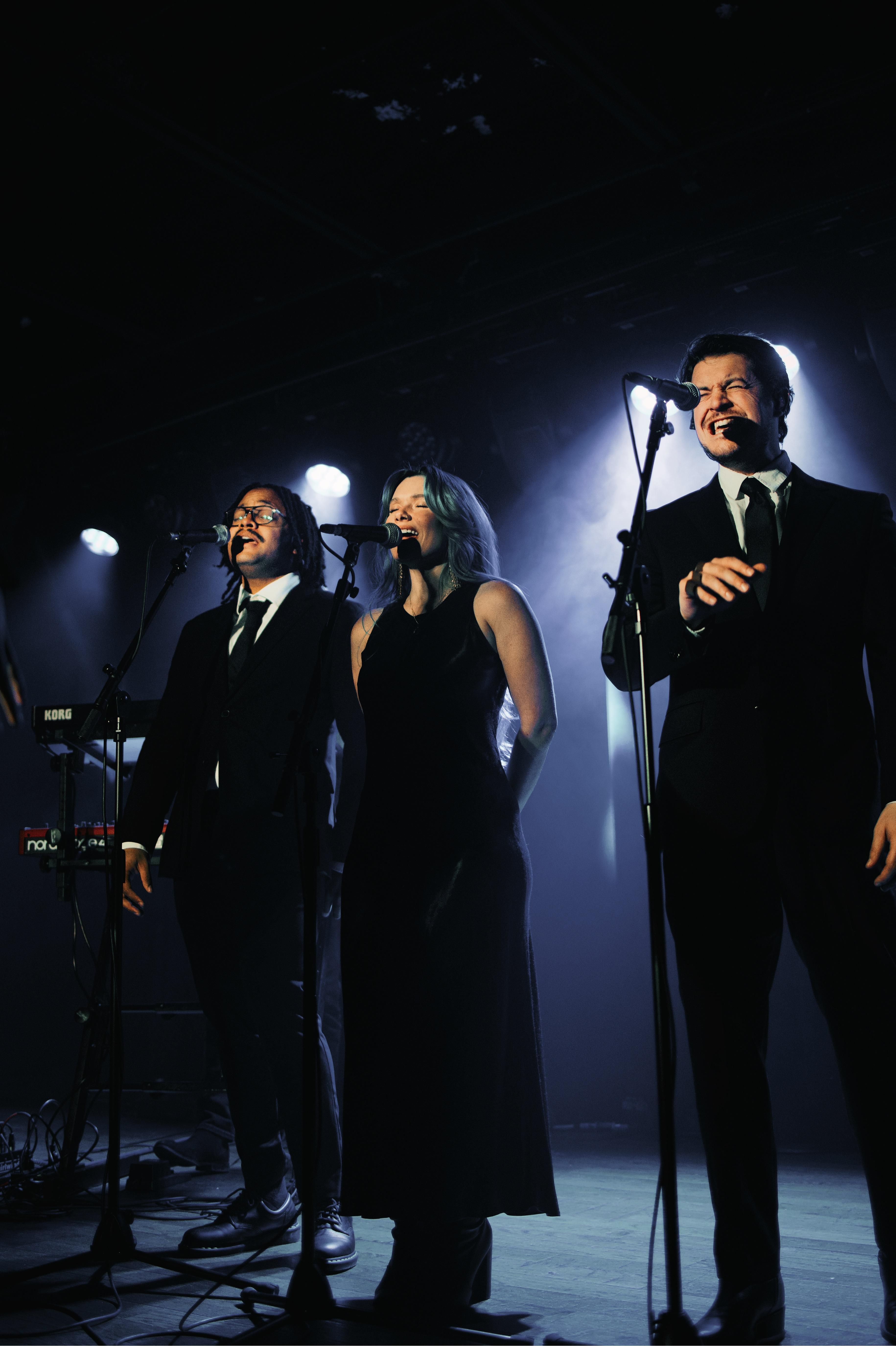 - 4 vocalists, 3 horns, drums, bass, guitar, keys