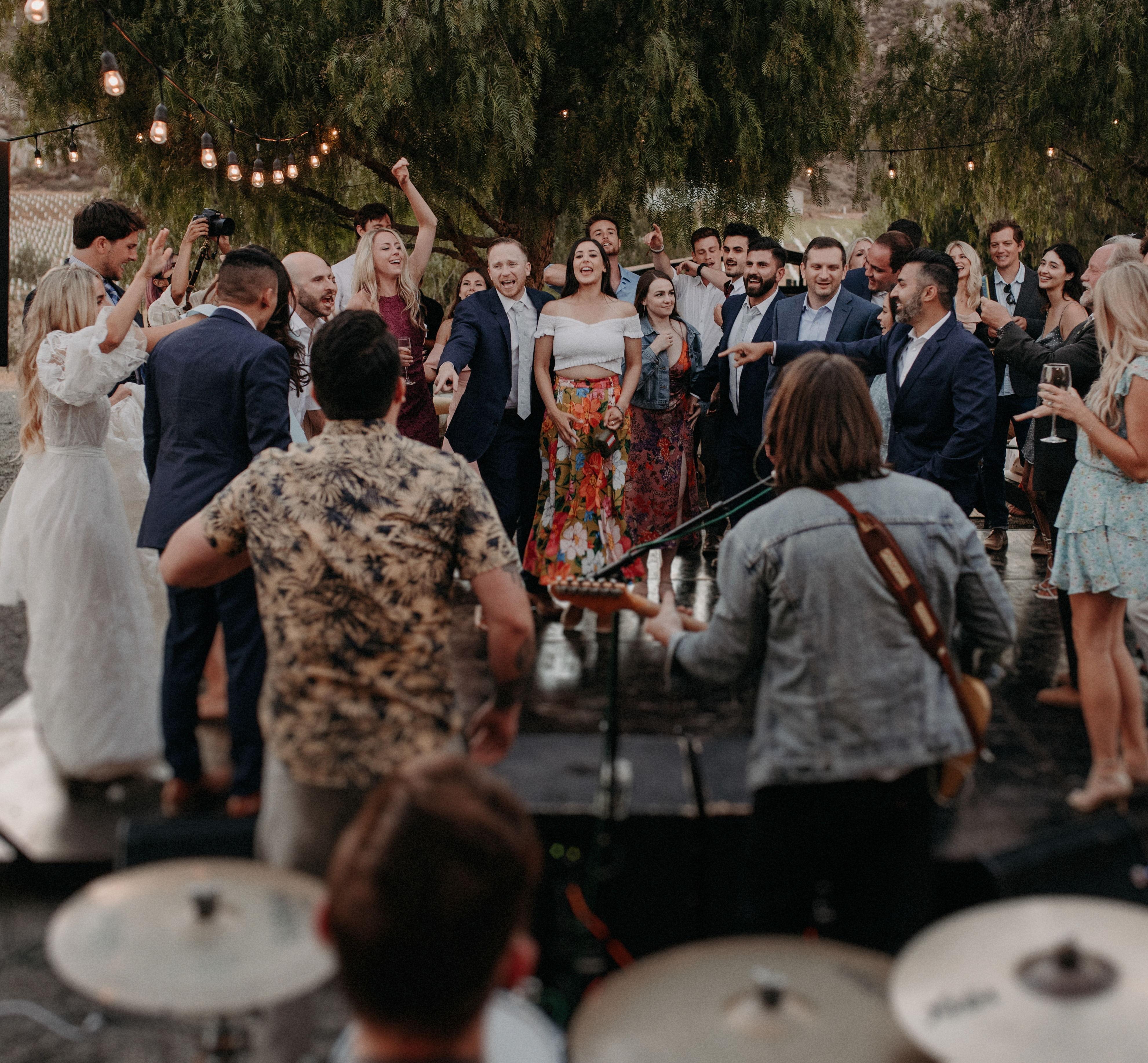 SEGA 90s is a world-class touring band delivering a high-energy live concert experience for weddings. Based in LA and OC, we specialize in 90s and Y2K hits spanning pop, rock, and hip-hop. We aren't a typical wedding "pickup group"—we are industry veterans who have performed on The Late Late Show and toured with artists like Noah Kahan. Whether performing for Nina Dobrev and Shaun White or headlining the weddings of Stephanie Beatriz, Ryan Cabrera, and Alexa Bliss, we bring five-star, tour-grade production to every event. From the Spice Girls to System of a Down, we keep the dance floor packed all night.