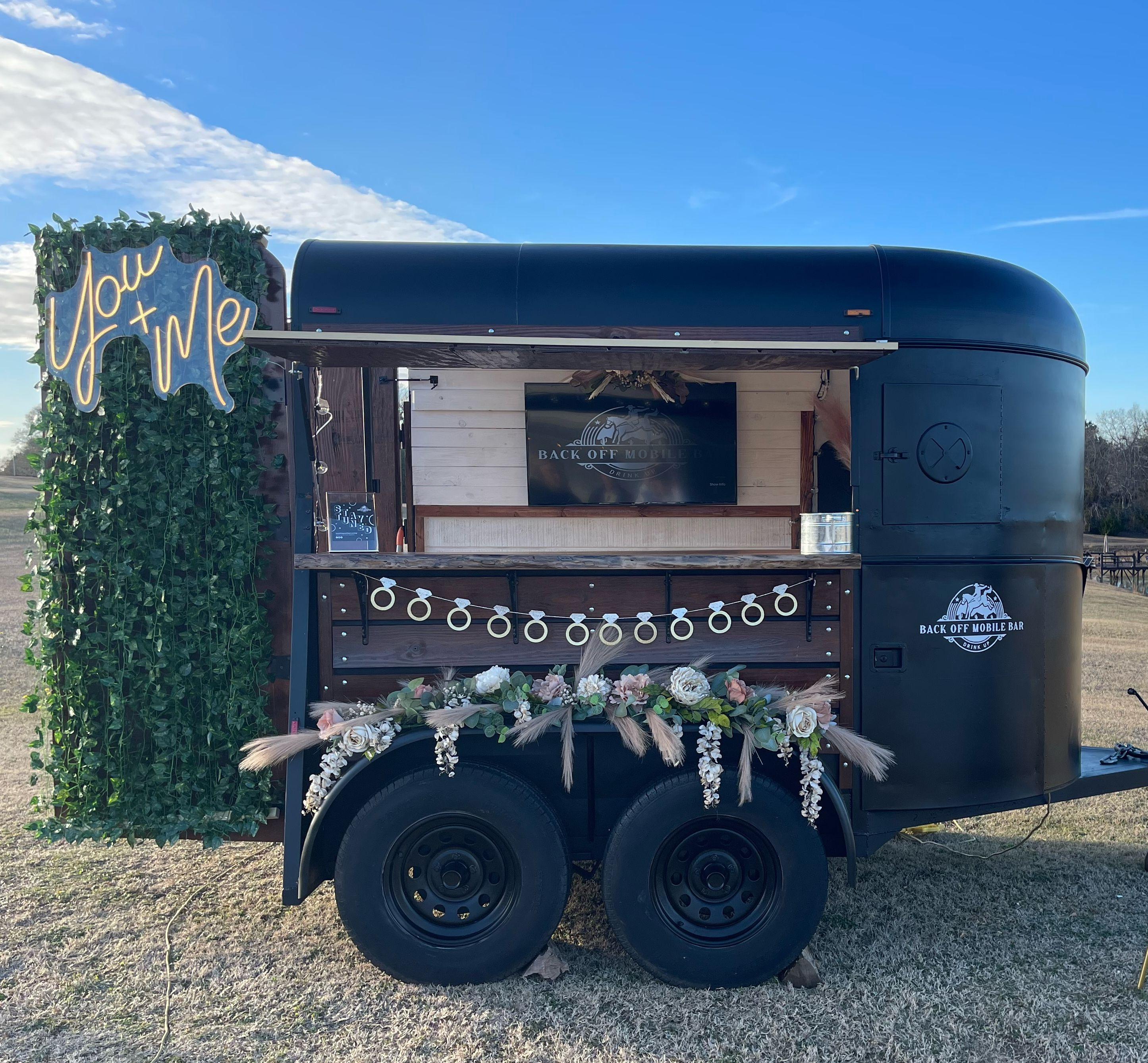 We are a dry hire mobile bar trailer out of Wetumpka, AL. You buy the drinks, and we will take the hassle of serving it to your guests while also having the cutest trailer to display. Our price for services start at $600. Reach out today to chat about what that includes and how we can make that custom to your event!