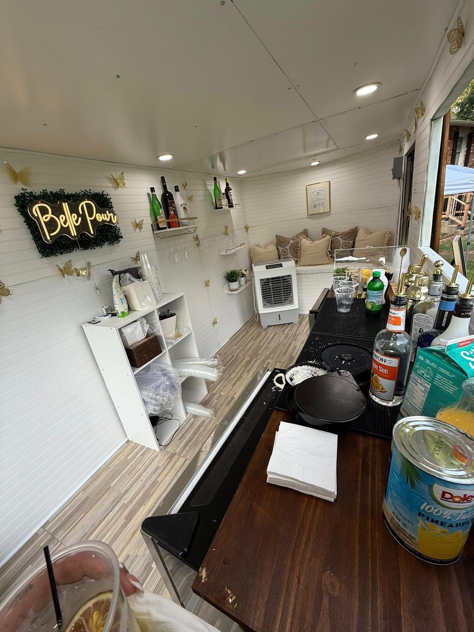 We hired Belle Pour for our wedding and we got the add-on of the trailer, I have to say that trailer is the most impressive and beautiful thing I've seen. It's like a whole other section of the party. They are so nice and attentive! Made our guests feel so comfortable! They not only serve the cocktails with a beautiful smile, their trailer has music and a booth/lounge where my guests took tons of pictures and had a great time! Belle Pour has an eye for detail and I highly recommend this business to anyone - you won't regret it.