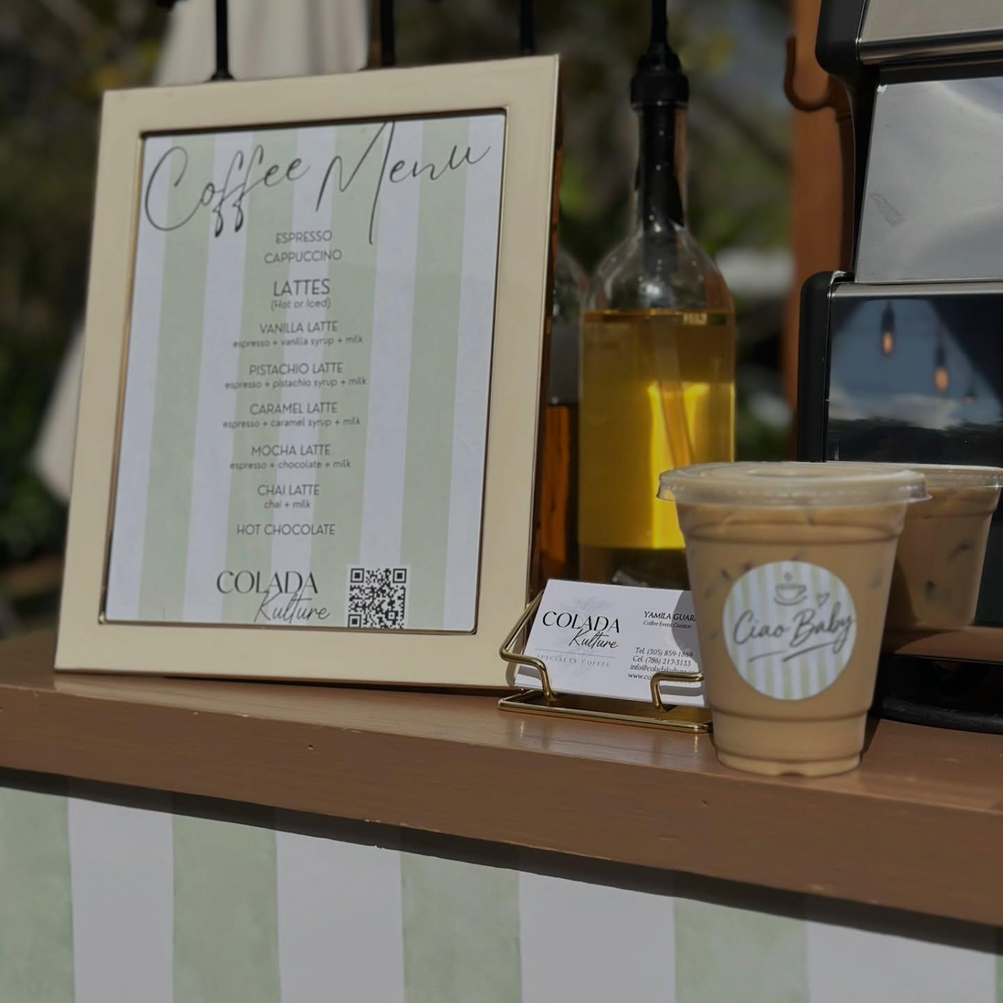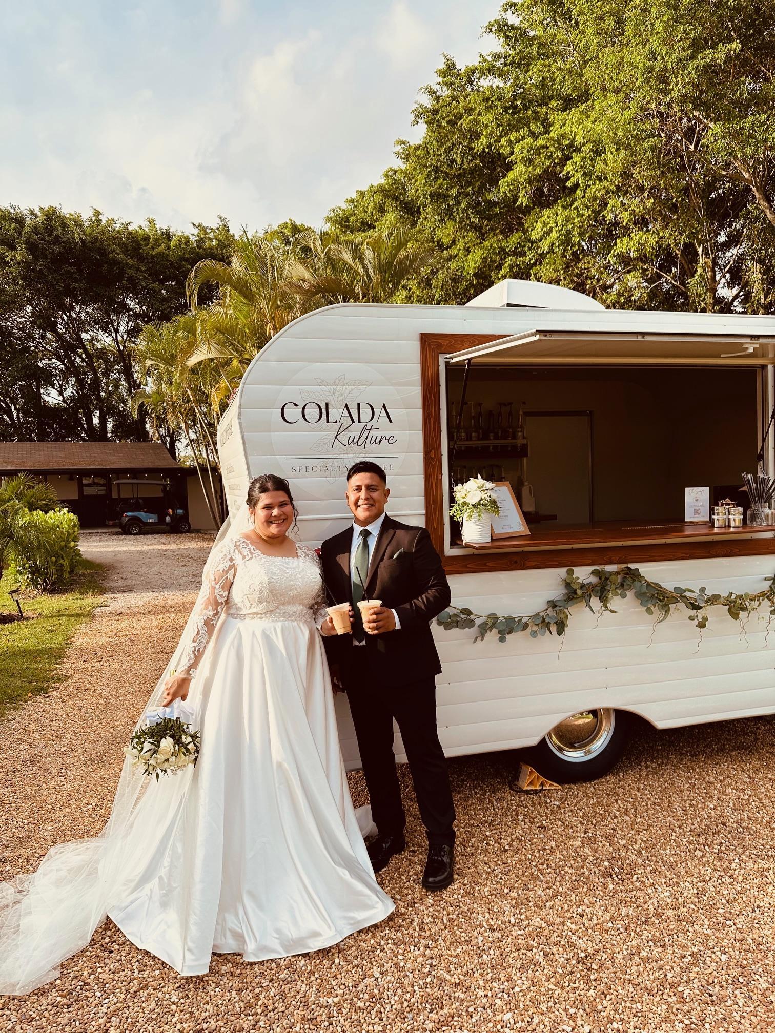 Colada Kulture Co. is a mobile coffee bar founded by Yamila, a Latina entrepreneur with a passion for creating meaningful connections. Inspired by her Hispanic roots, where coffee is a symbol of love and hospitality, she brings that same warmth to weddings and celebrations. With beans sourced from women-owned farms, Colada Kulture elevates your special day with unforgettable coffee moments. Crafted with care, joy, and love in every sip.