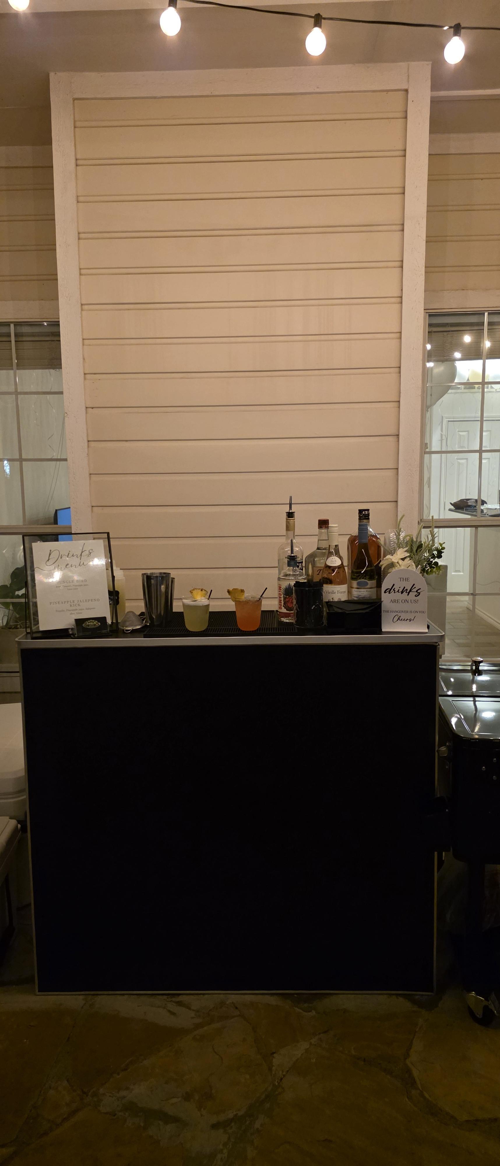 ⦁ 4 hours of bar service ⦁ Professional bartender ⦁ Elegant mobile bar setup ⦁ Ice, garnishes and mixers ⦁ Up to 3 signature cocktails ⦁ Spa water ⦁ Menu signage display ⦁ Shopping list ⦁ Client provides alcohol