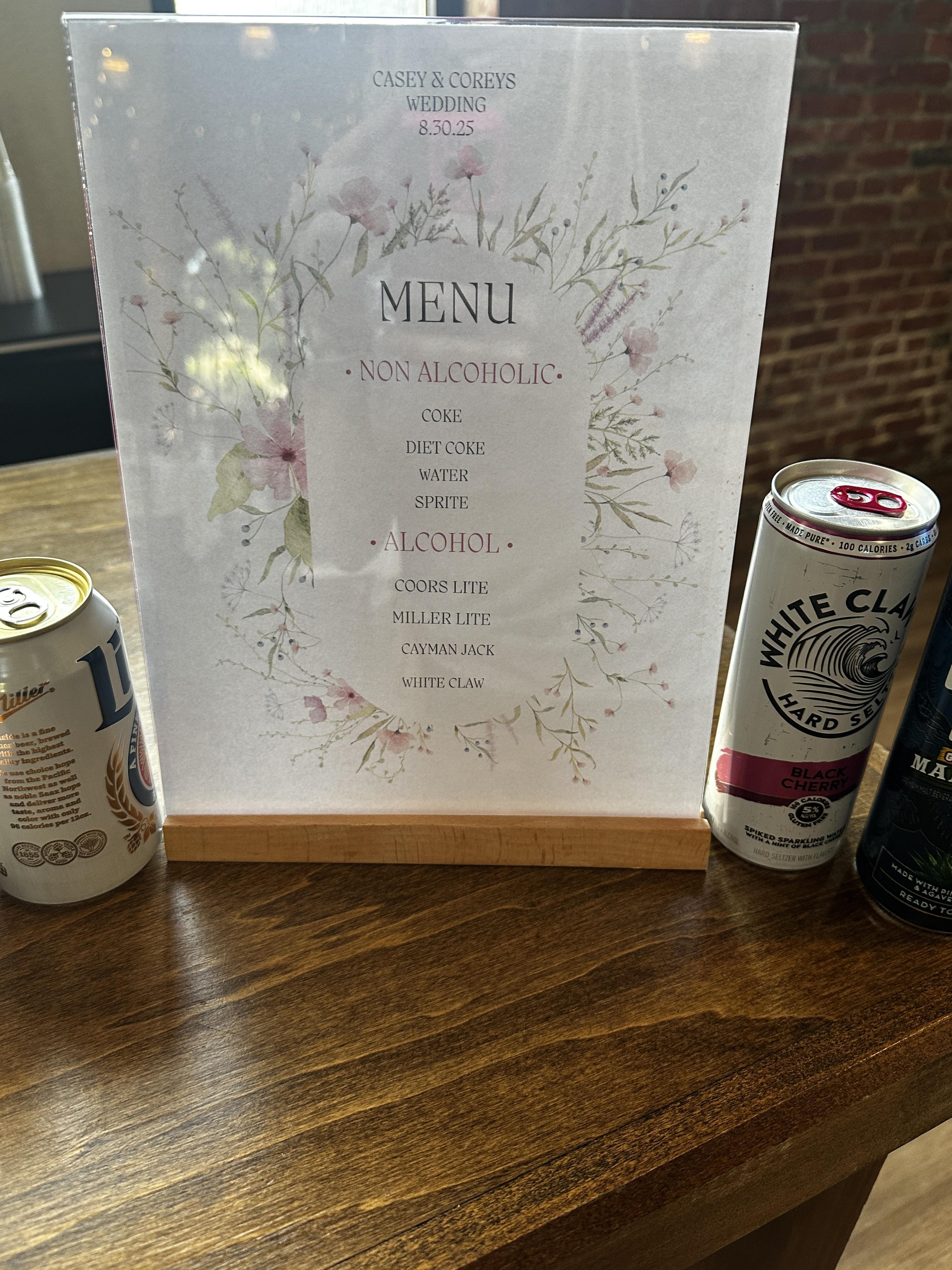 - Mixers/non-alcoholic options