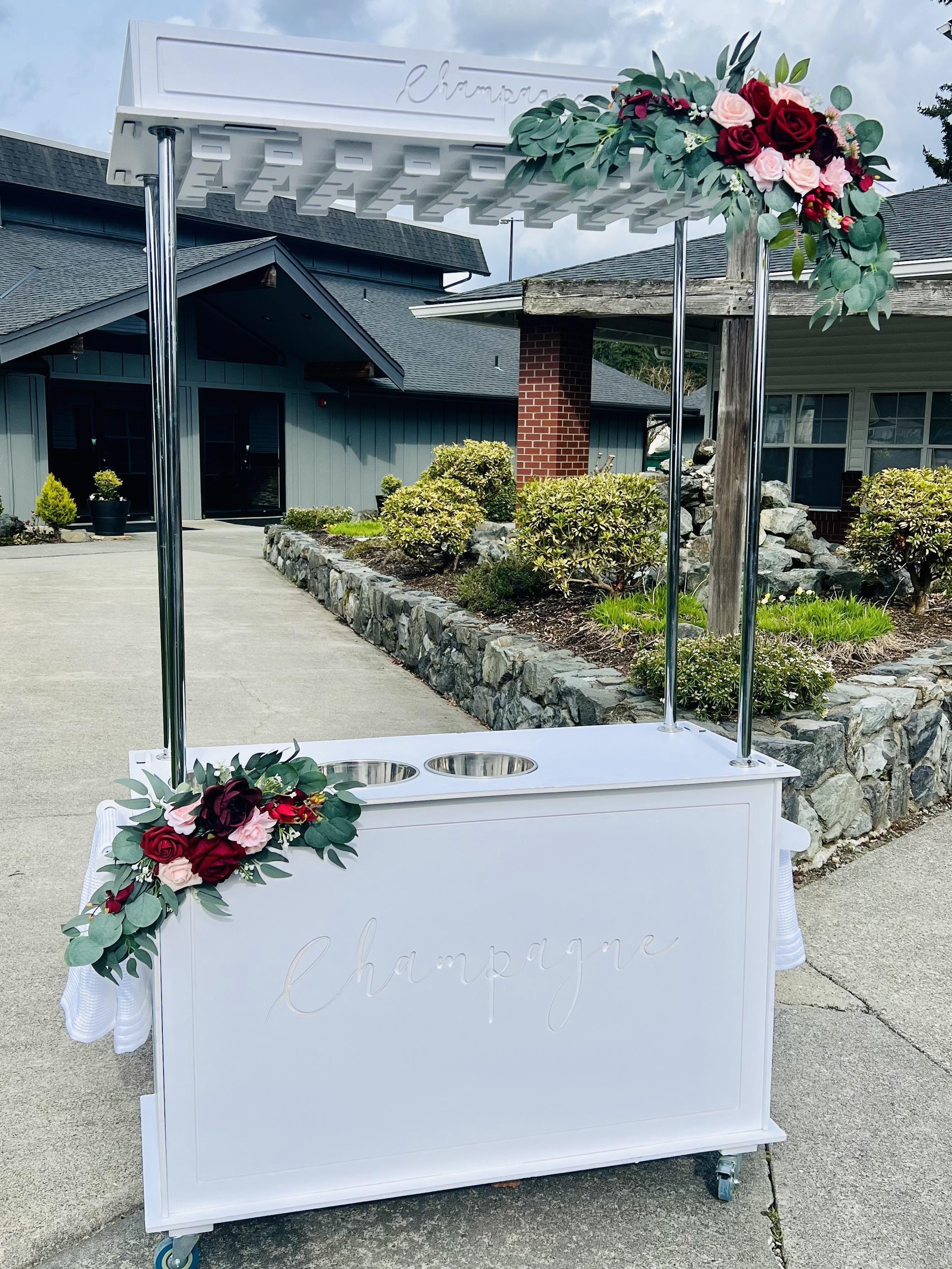 This option is simple elegance. This package includes a 3 hour rental of our cart, 50 glass champagne flutes, and our signature decor (totally optional!) Elevates any occasion instantly. Perfect choice for Graduations, Corporate Events, Fundraisers and even surprise proposals! Add on our champagne wall or upgrade glassware for an extra touch!