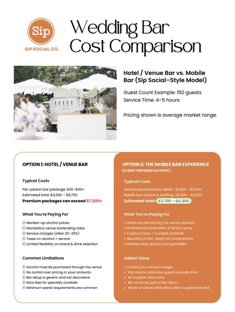 Book your wedding by Mar 31st and receive 20% off mobile bar services for March-June 2026. Limited availability—secure your date now.