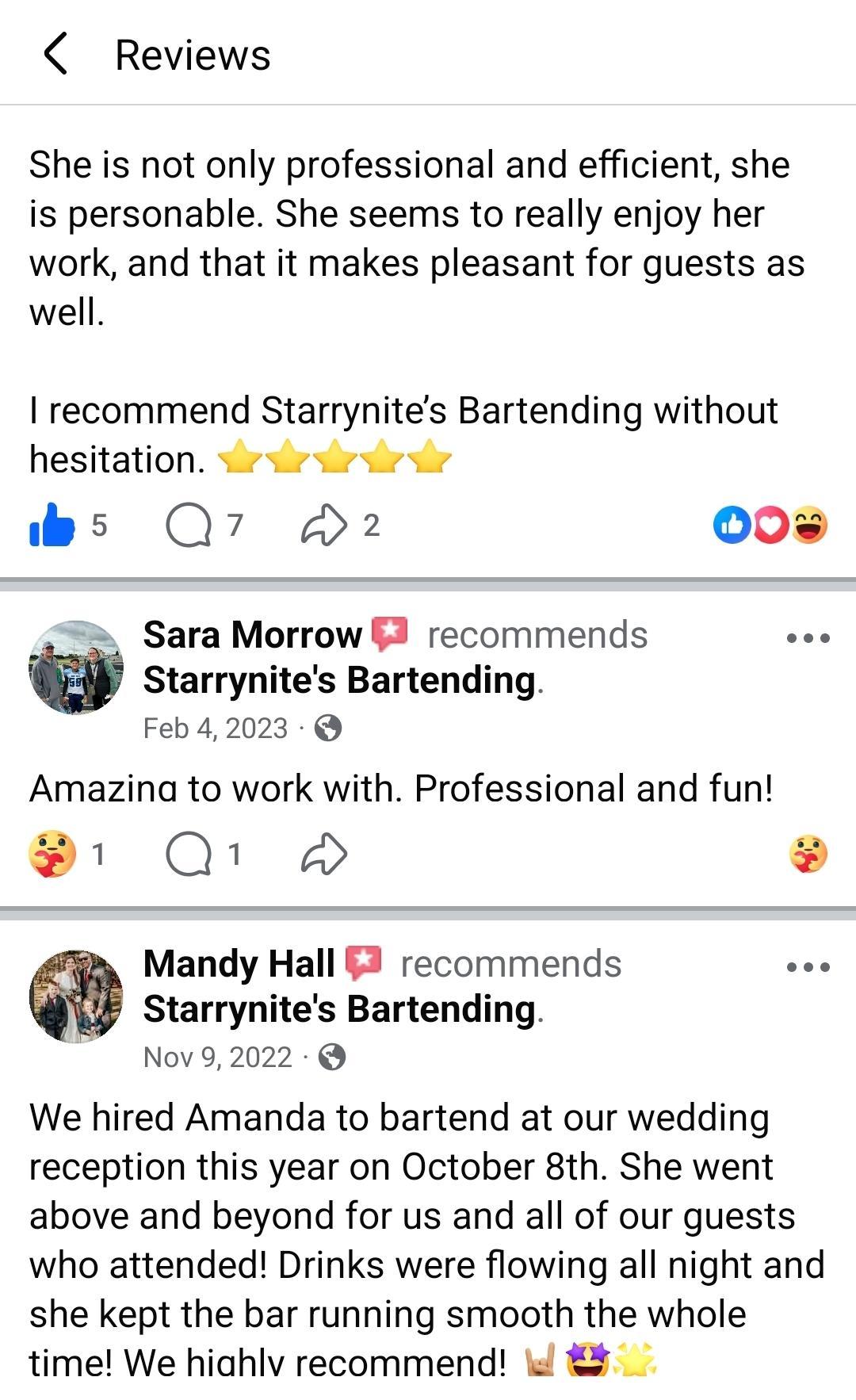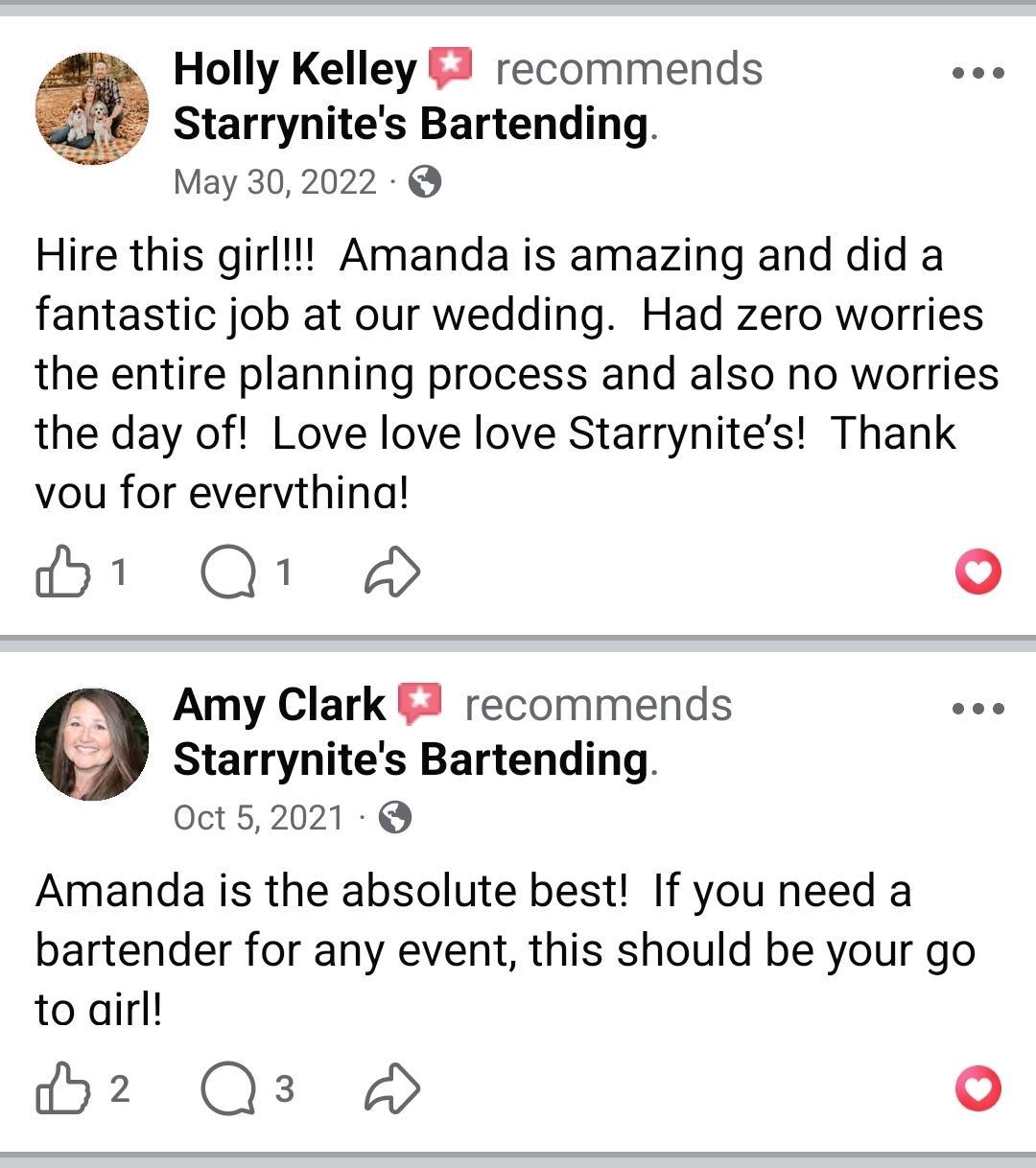 About Starrynite's Bartending
