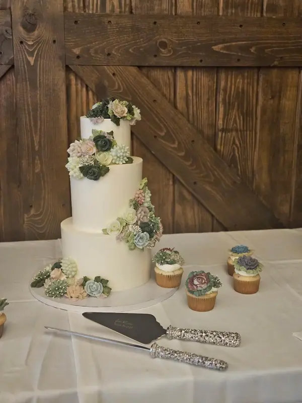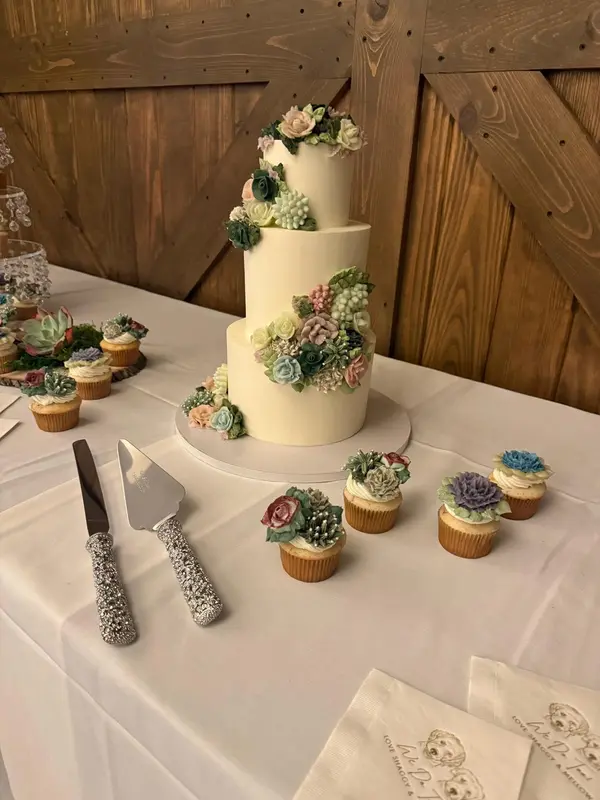I couldn’t be happier with the baker I chose Backyard Bakeries! I had such a hard time finding someone who could bring my ideas to life. My wedding theme was succulents, and I wanted fondant or buttercream succulents on both my cake and cupcakes. After trying several bakers — some with disappointing taste or quality, and others unable to execute my vision — I finally came across Robyn at Backyard Bakeries. From the very beginning, Robyn was an absolute pleasure to work with. She was kind, accommodating, and never once dismissed my ideas. Instead, she encouraged me and helped make them even better! On the day of my wedding, everyone couldn’t stop talking about how incredible the cake setup looked. I could tell Robyn herself was proud of her beautiful creation — and rightfully so! Not only did the cake look stunning, but it tasted amazing too. Robyn also makes other delicious treats like macarons, which I now regret not adding to my order! I’ll definitely be returning to Backyard Bakeries for all my future special occasions. ️️️️️ Highly recommend!