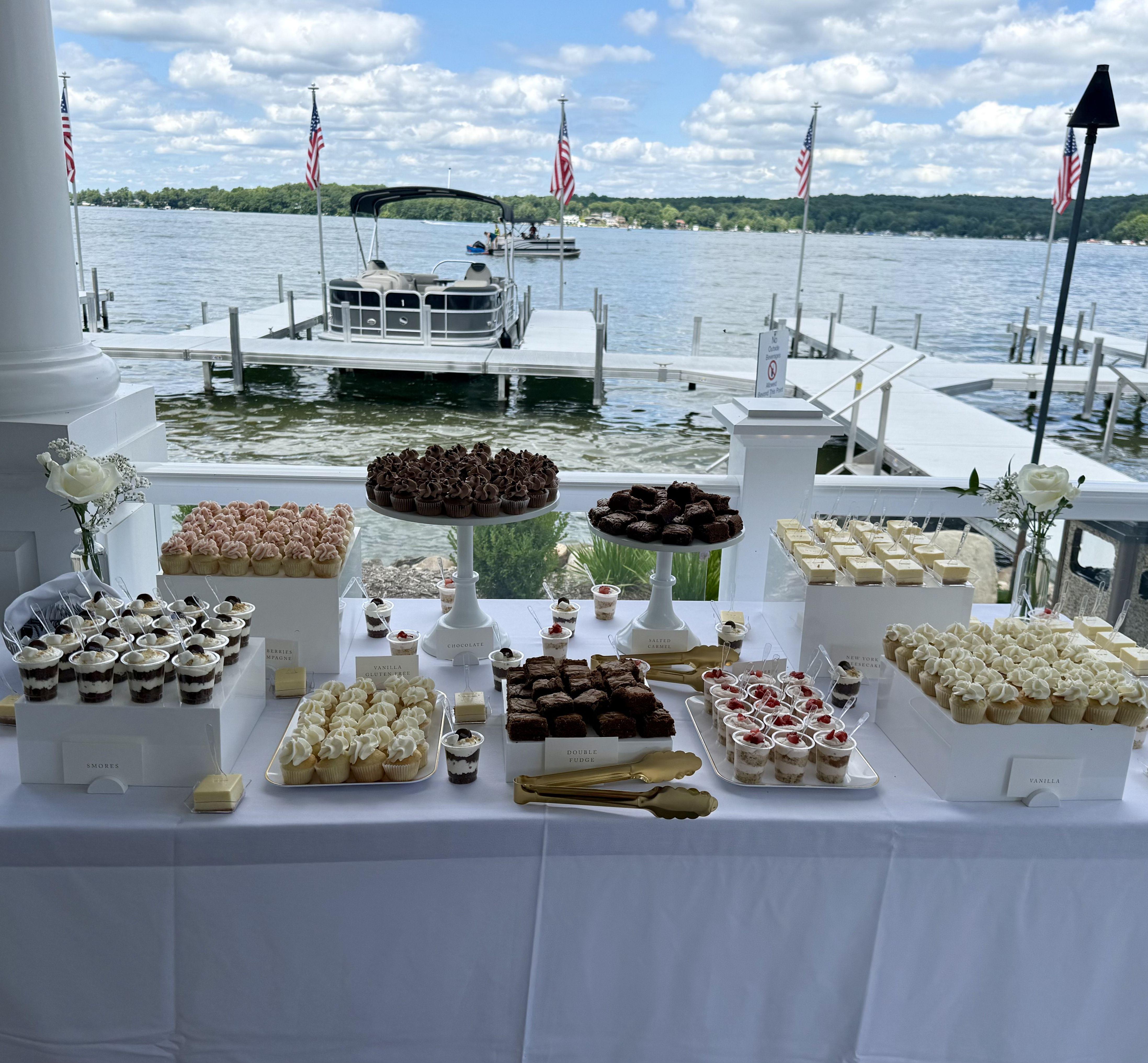 With over 40 flavors on our cake and cupcakes menu, we offer a variety of interesting and delicious flavors! Some of our most popular flavors are Lemon Blueberry, Strawberries & Champagne, Raspberry Almond, Blueberry Pancake, Death by Chocolate and Salted Caramel. We also offer a variety of different dessert options that are sure to satisfy your guests' sweet tooth.