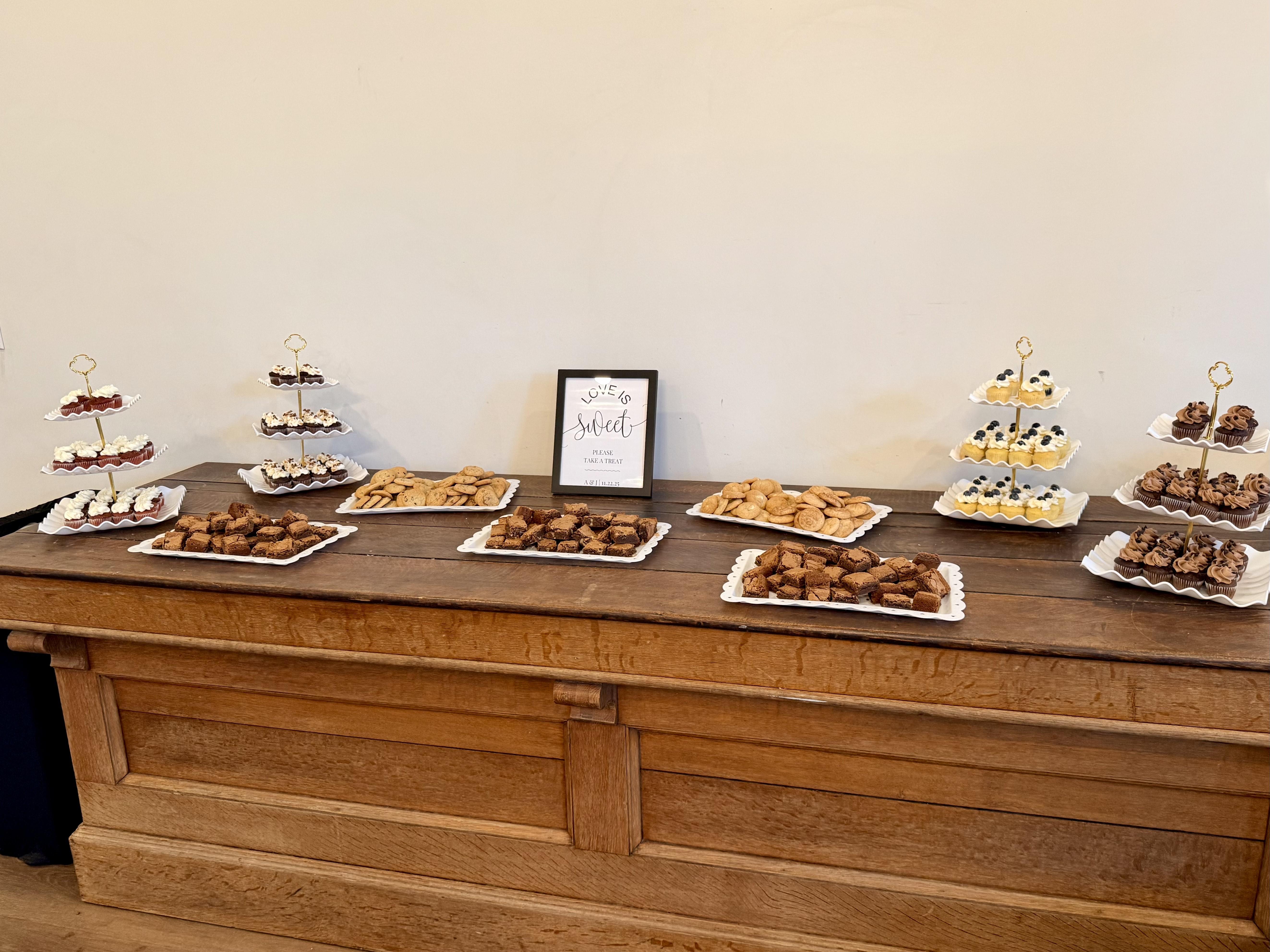 Since 2010, we have been working with couples to create the perfect treats for their big day! Weddings are a milestone moment in life and making sure it has the sweetest touch is our passion. We take pride in making your dessert dreams come true. We strive to make the process as fun and stress free as possible. With a variety of dessert offerings including tiered cakes, cupcakes, brownies, cookies, cutting cakes, cake buffets, cheesecake bites, donut holes, pie poppers, and sugar cookies, there is something for everyone!
