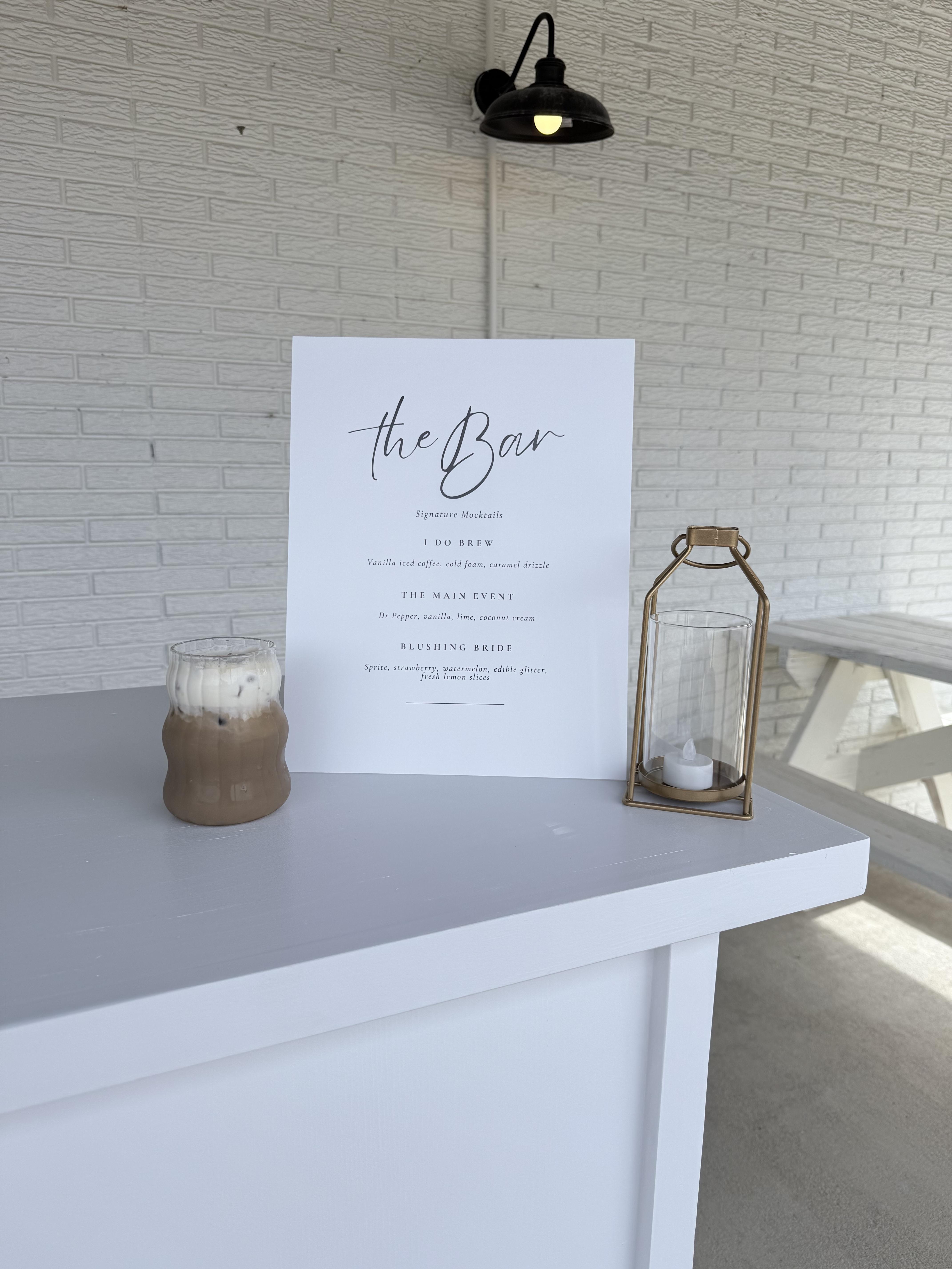 An elevated shower experience featuring glam details and custom drinks designed to match your bridal theme. A perfect addition to brunch, backyard showers, or venue celebrations.