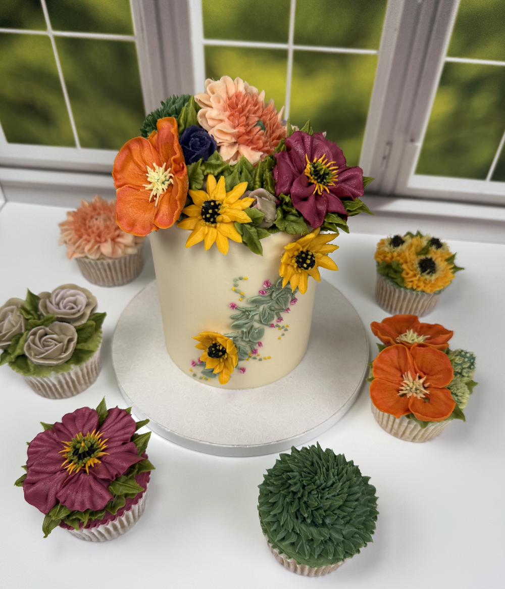 - Custom Cupcakes w/ hand-piped buttercream florals