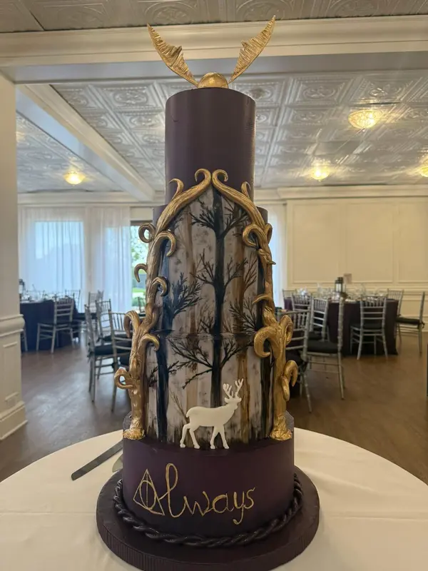 Nadiya created the most magical Harry Potter inspired wedding cake we could have dreamed of. From our first tasting to the final reveal, the entire experience felt thoughtful, creative and enchanting. She took every idea we shared and turned it into something far more beautiful than we imagined. The cake itself was pure magic. The hand painted Forbidden Forest, the white stag Patronus, the elegant gold detailing, the “Always” inscription and the Golden Snitch on top all came together so perfectly. It truly felt like a piece of the wizarding world brought to life in the most elegant way. On top of being stunning, the cake was completely gluten free for my allergy and still tasted absolutely incredible. Our guests were amazed that something so beautiful could also taste so good. People are still talking about it. Seeing the cake on our wedding day was a moment I will never forget. Nadiya’s talent, care and attention to detail made the entire experience unforgettable. We are so grateful for the magic she created and for giving us a cake that was meaningful, delicious and everything we hoped for. Thank you, Nadiya, for bringing our vision to life so perfectly.