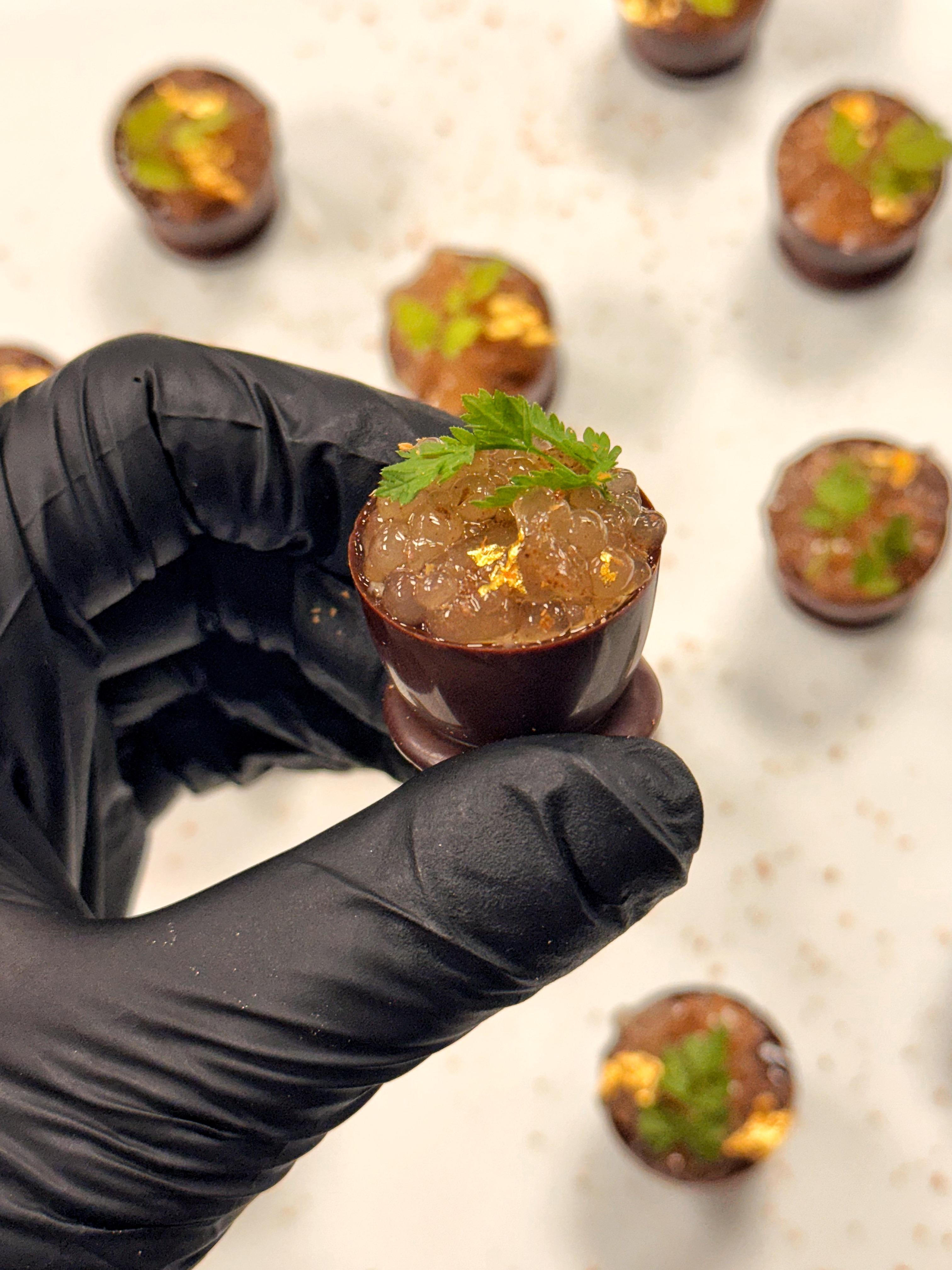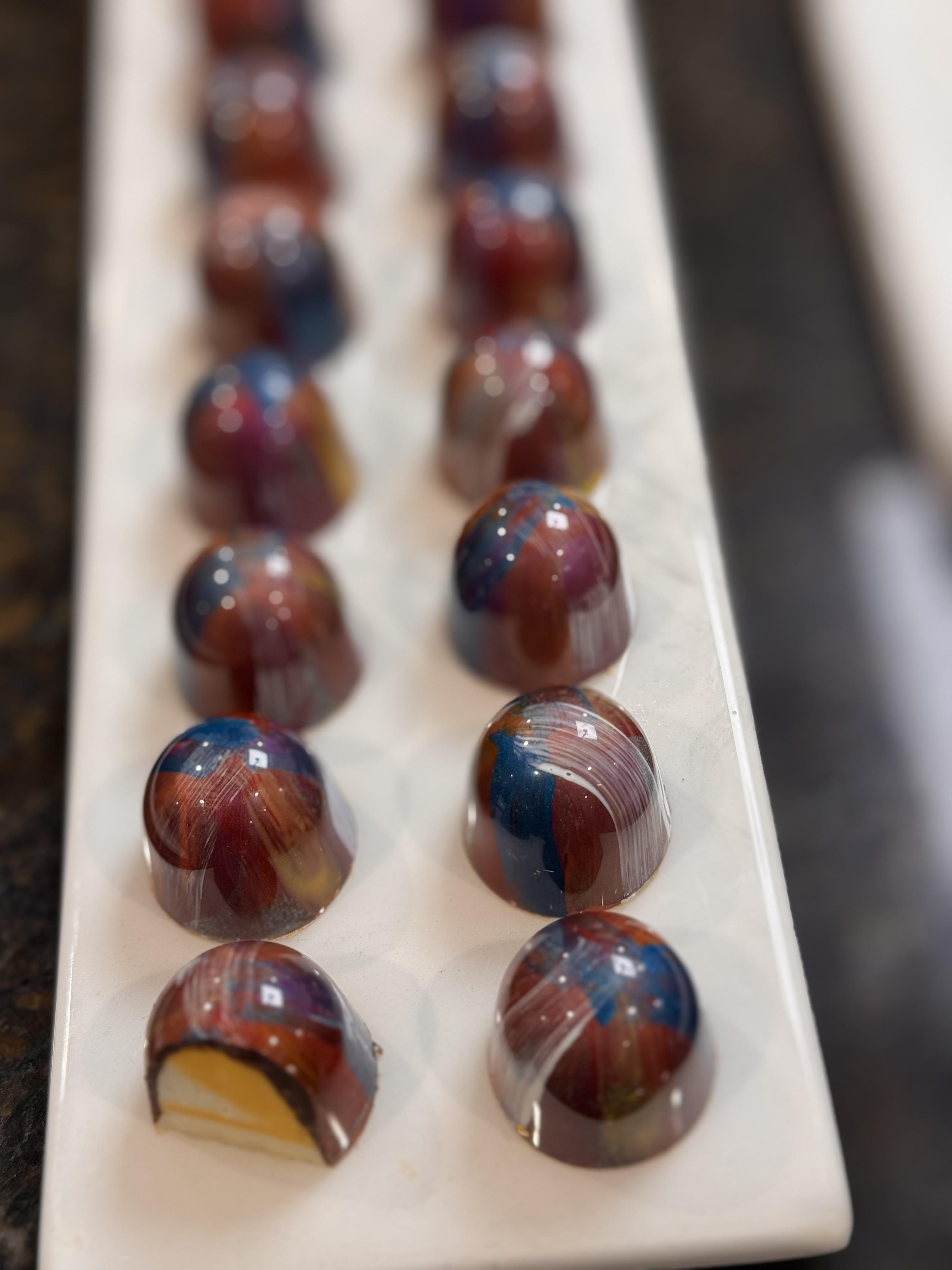 What sets Nush Chocolatier apart is the harmony between art, gastronomy, and emotion. I blend modern pastry techniques with fine chocolate craftsmanship, inspired by nature, color, and culture. Each bonbon is uniquely designed — from galaxy-inspired glazes to flavor pairings like rosemary blueberry cheesecake or miso brûlée — transforming chocolate into an experience, not just a dessert. Every detail, from texture to presentation, is crafted with purpose and passion to create unforgettable moments for every couple I work with.