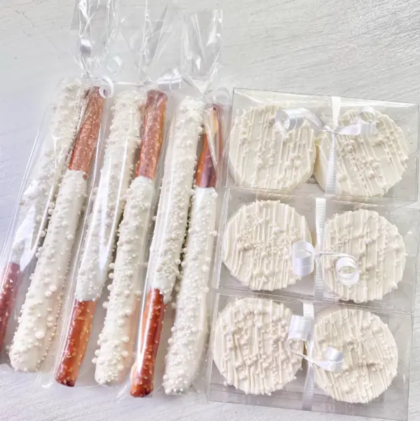 We ordered chocolate-covered pretzels, Oreos, and Rice Krispie's for our family reunion, and they were absolutely perfect! The presentation was beautiful, each treat was individually packaged with elegant white ribbons, making them look just as amazing as they tasted. The attention to detail with the pearl sprinkles and drizzle made them stand out as a classy touch to our dessert table. Not only were they visually stunning, but they were also fresh, delicious, and a hit with both kids and adults. Communication and service were excellent from start to finish, and everything arrived on time and in perfect condition. Highly recommend for any event where you want a treat that’s both gorgeous and tasty!