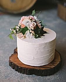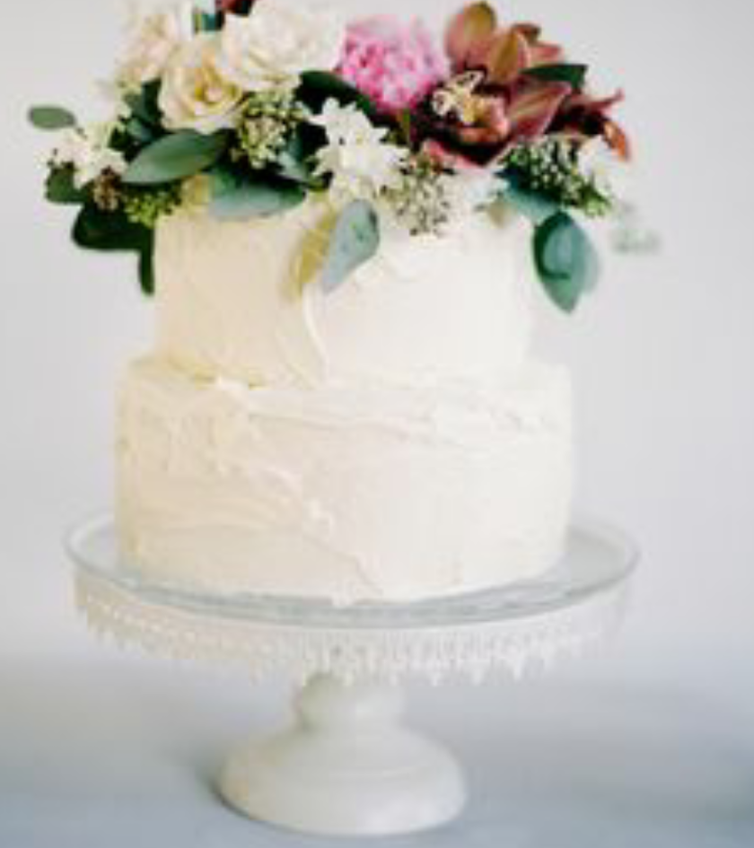 A classic two-tiered wedding cake (6" & 8") Your choice of flavor filling and finish with our signature floral design. Anniversary Cake