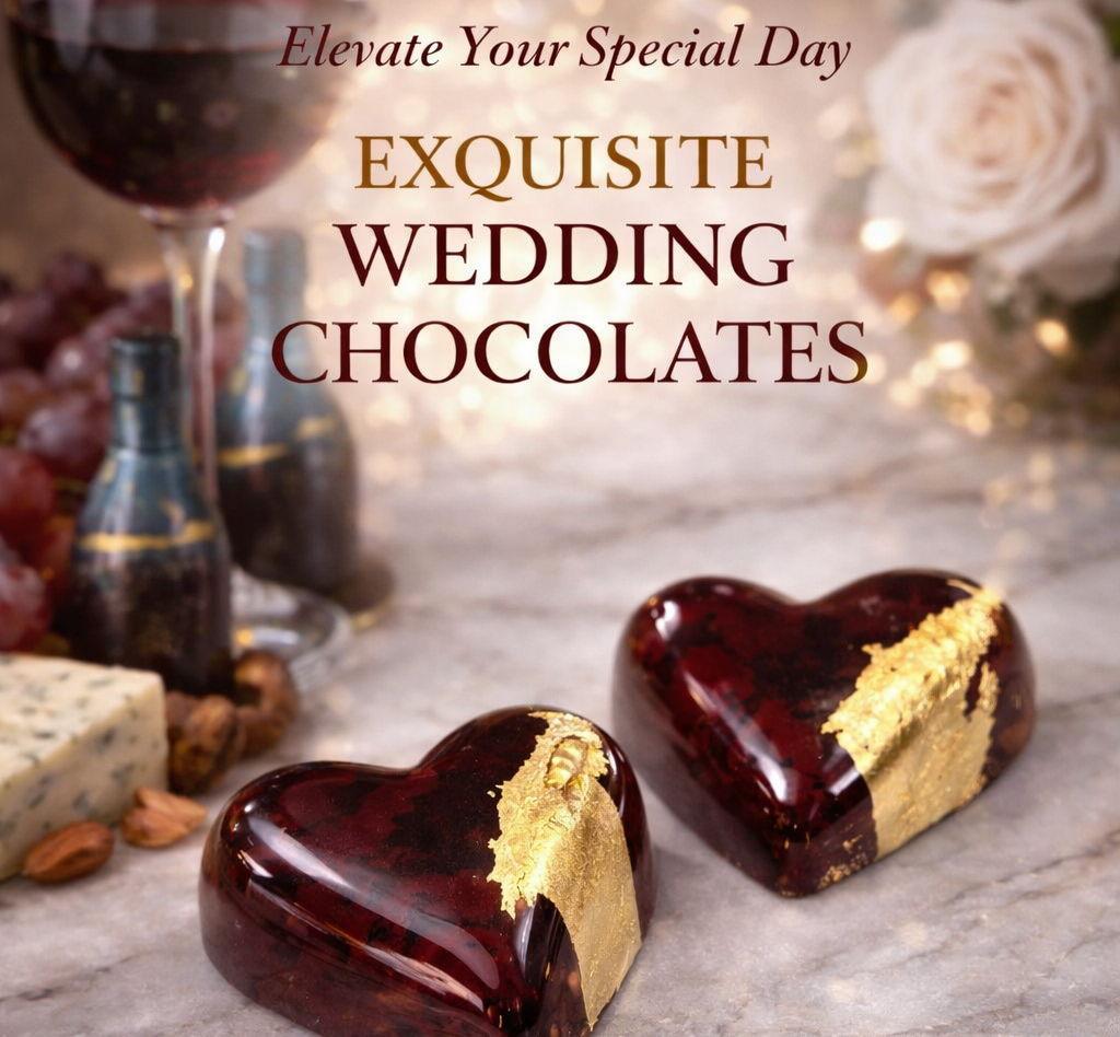 My chocolates range from custom painted Bon bons to chocolate bar and displays. Sample flavor options for the fillings and choose from non alcoholic to alcohol infused chocolates. I work with you to make table settings for 2 piece guest gifts, to chocolate charcuterie board bar.