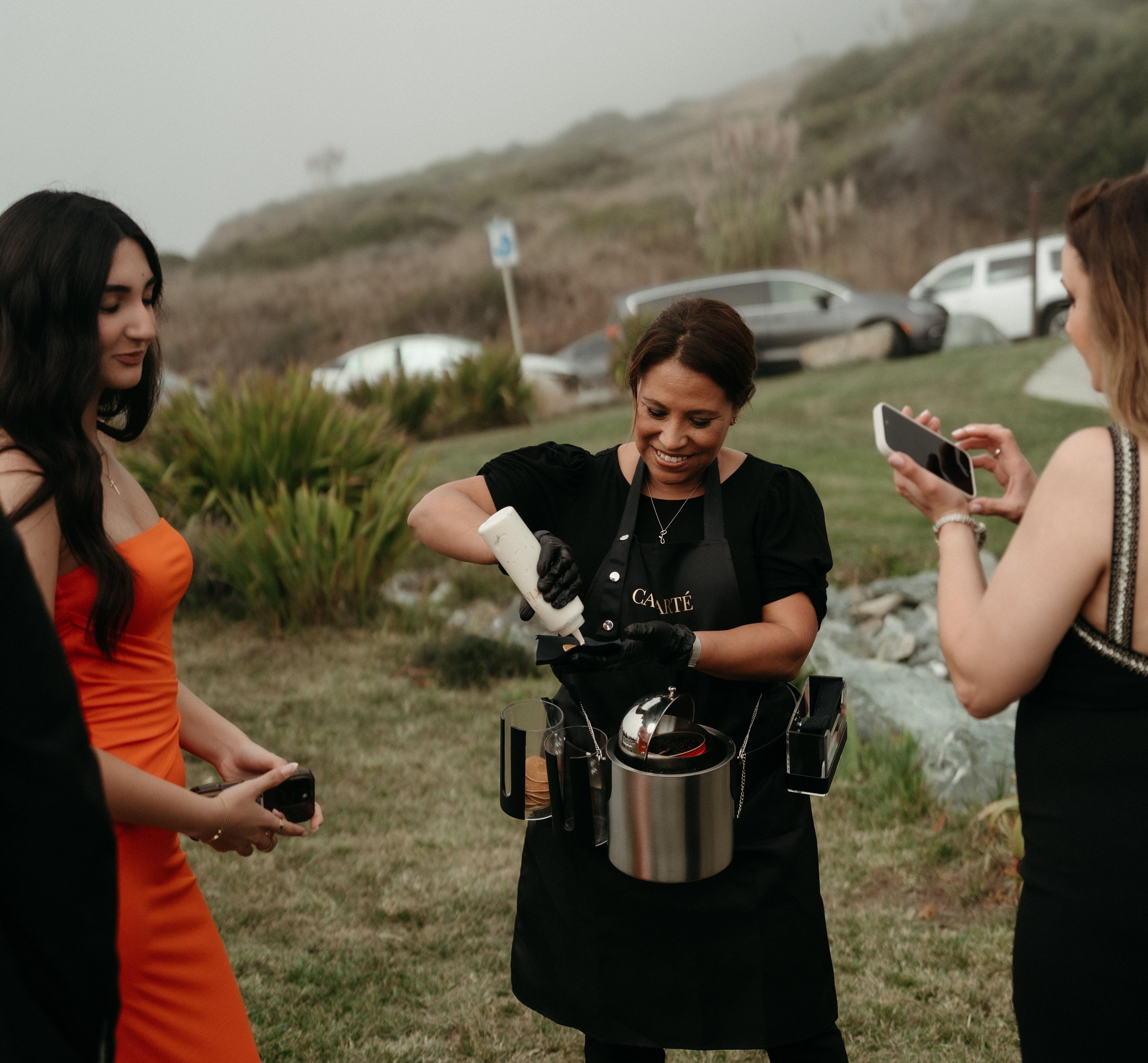 Unlike traditional caterers, Caviarté offers a fully immersive, high-end caviar experience tailored to each couple’s vision. We focus on presentation, personalization, and guest interaction—creating a luxurious focal point rather than just a service. From premium caviar selections to elegant styling and white-glove execution, we bring exclusivity, artistry, and a level of refinement that turns your wedding into a truly elevated celebration.