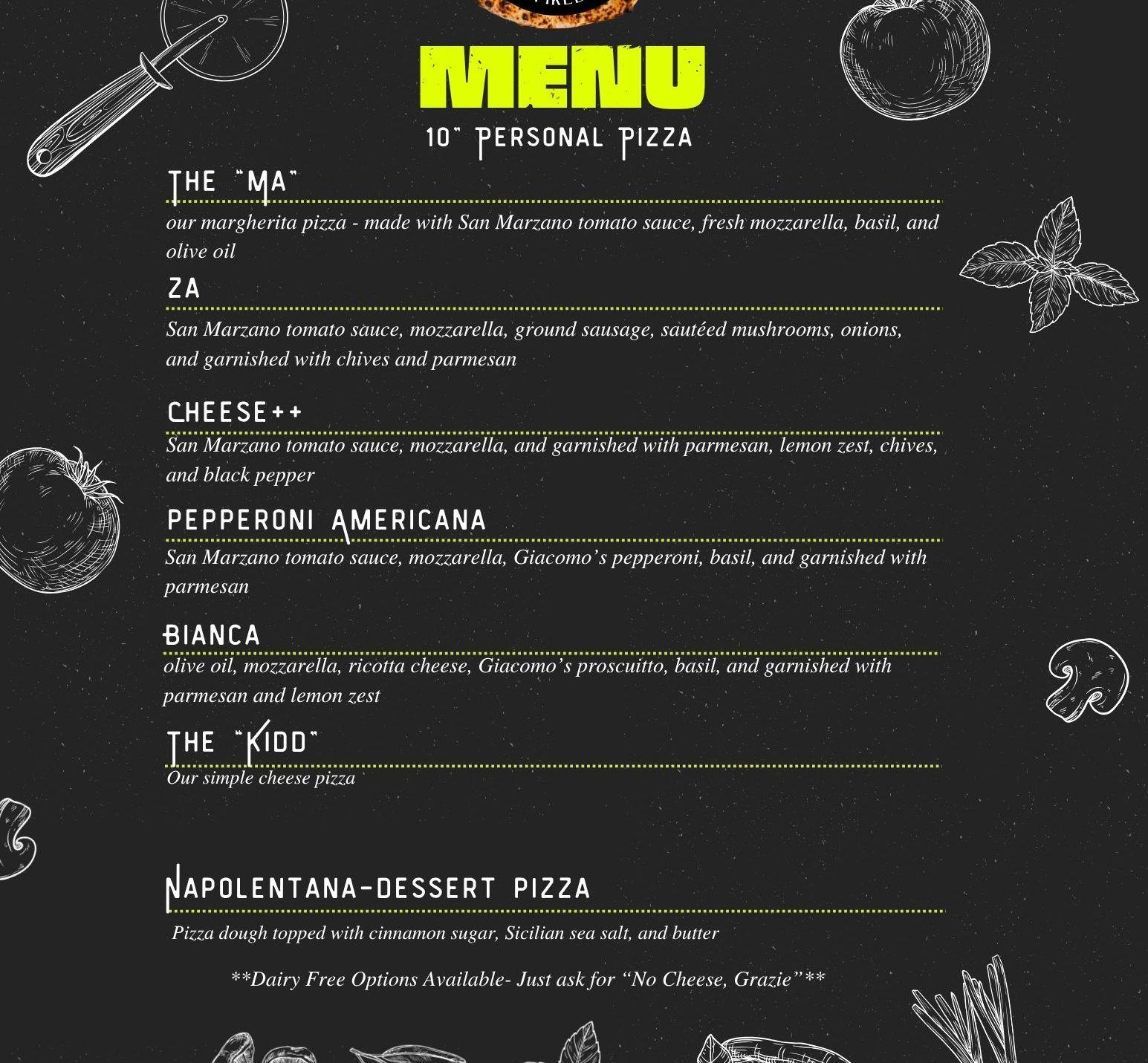 Pizza IS our love language! As a couple ourselves, we have combined 25 years in the hospitality industry. We love to create specialty pizzas for a personalized touch. We provide exceptional, reliable customer service that make an impact for you and your guests in the best way!